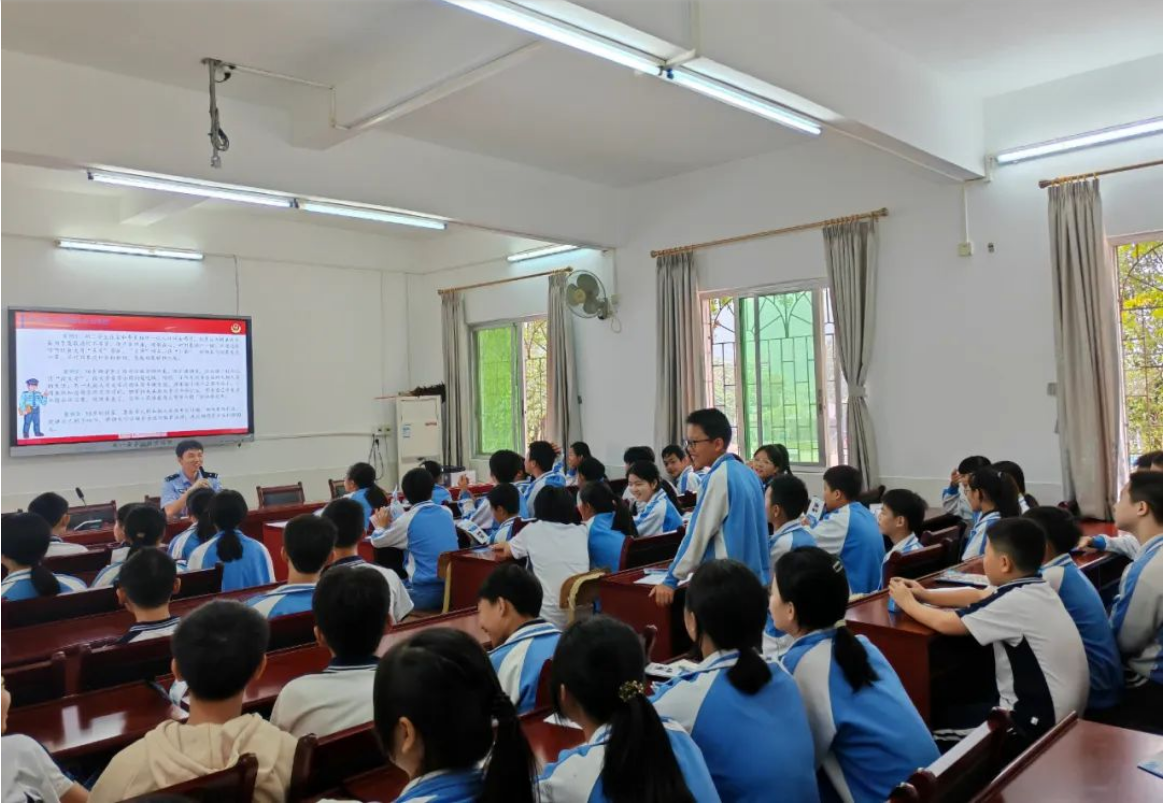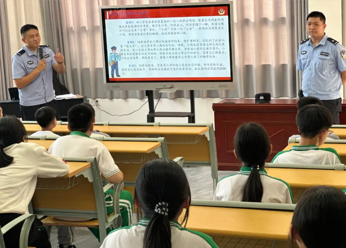 法治宣讲播撒种子。青年民警以身边事、身边人为切入点,开展主题为《预防青少年违法犯罪,守护少年的“你”》的法治教育课,通过法律普及、案例分析、视频播放、互动问答等形式,宣讲预防青少年违法犯罪的法律知识,引导同学们做遵纪守法的“明白人”、自我保护的“责任人”。