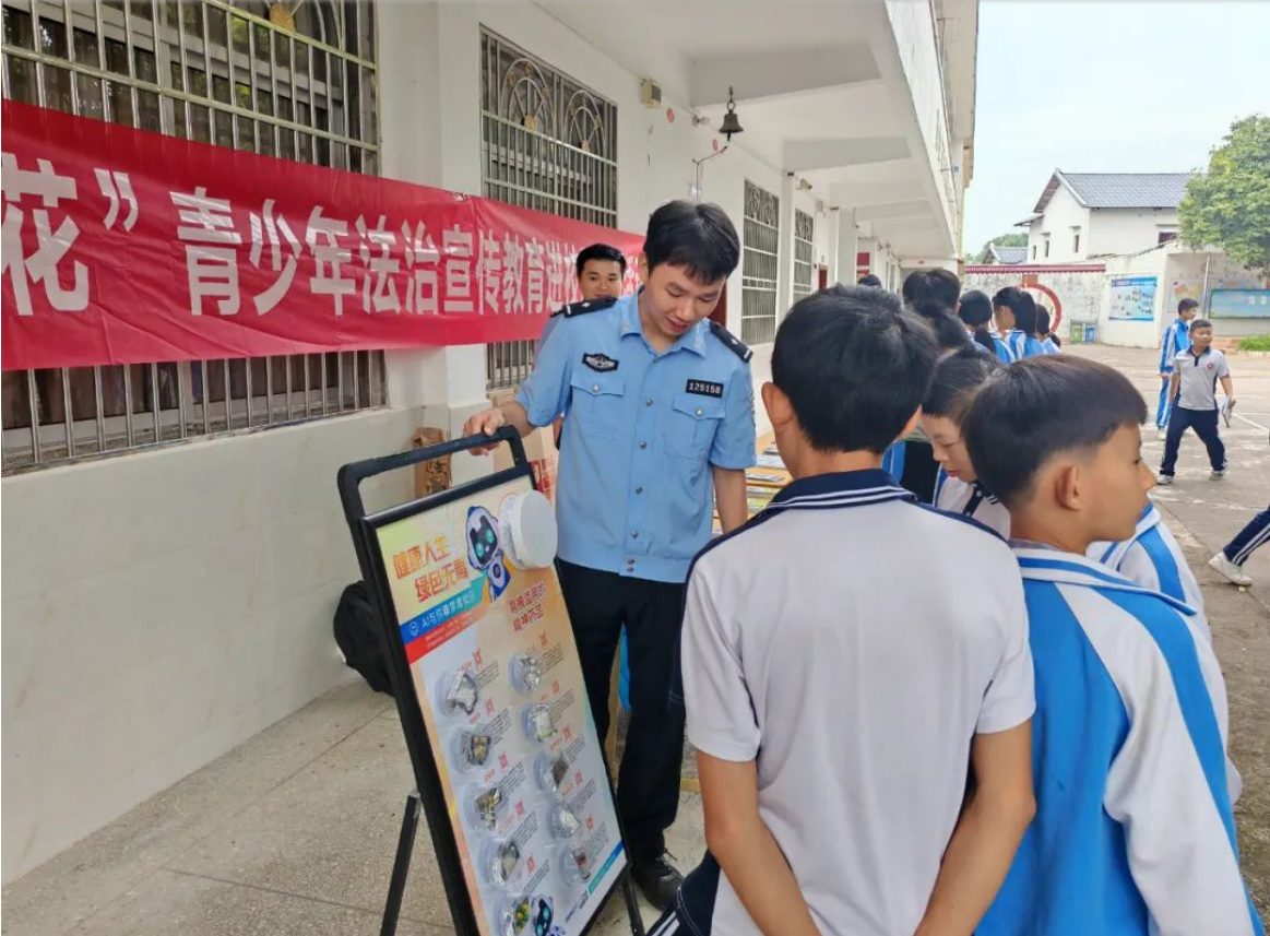 知识普及滋养花朵。民警在学校教学楼精心布置教育宣传点,向同学们发放“禁毒”“交通安全”“反诈”等安全知识的宣传折页,通过实物展示、知识问答的形式,提高青少年的法治意识,增强自我防范能力。