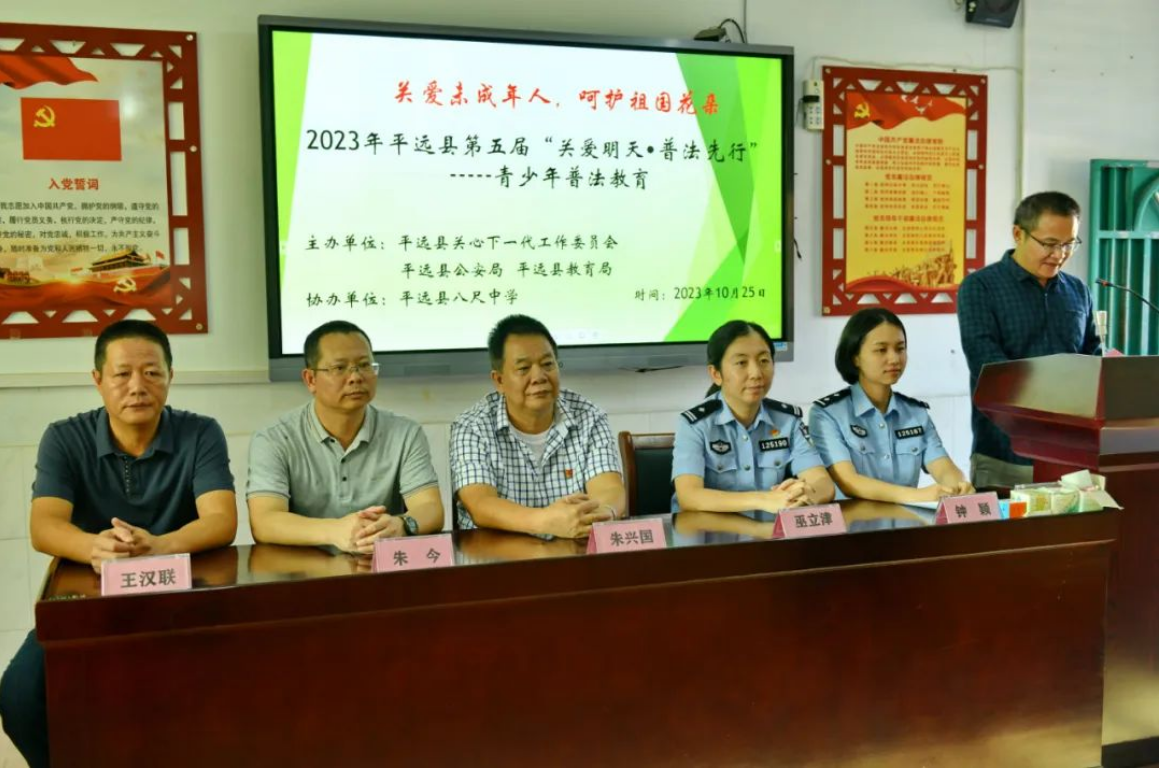 10月25日,平远县关工委、县教育局联合县公安局护苗女警团在八尺中学开展第五届“关爱明天·普法先行”青少年普法教育活动。