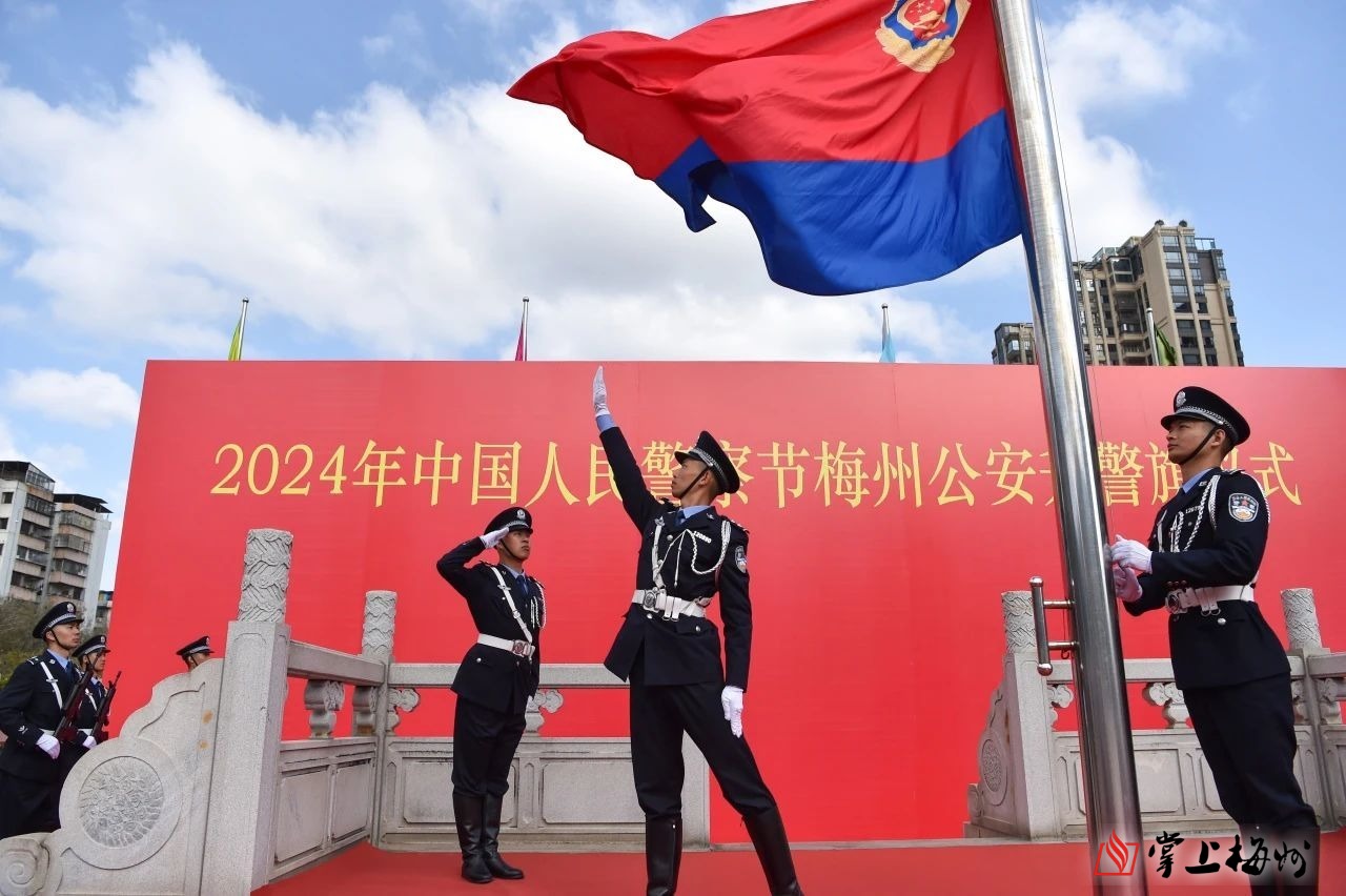 掌上梅州讯 1月10日,全市公安机关开展庆祝第四个中国人民警察节系列活动,并举行庄严隆重的升警旗仪式,激励广大民警砥砺前行,忠诚履行为平安梅州建设保驾护航的职责使命。副市长、市公安局局长詹星参加活动。