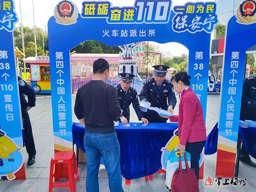 当天,梅州市公安局在梅城客都汇商业广场举行庆祝第四个“中国人民警察节”、全国第38个“110宣传日”宣传活动,向群众宣传防盗、防抢、交通安全等安全防范知识,普及公安业务办理知识,并组织“警营书法家”为群众写春联和送春联。广东省惠州铁路公安处梅州站派出所设置铁路有奖问答展台,解答群众提问,向市民宣传铁路基本安全常识,并围绕“铁路公安”历史沿革、职责任务、报警渠道等方面进行讲解。与此同时,各县(市、区)公安机关也通过举办警营开放日、“党史中的梅县公安印迹”馆开馆仪式、“千警联万户”全警大走访、“萌娃”进警营、“警礼服纪念照”、警营文化作品展以及“视频畅联110报警体验”等活动,增进警民互动。