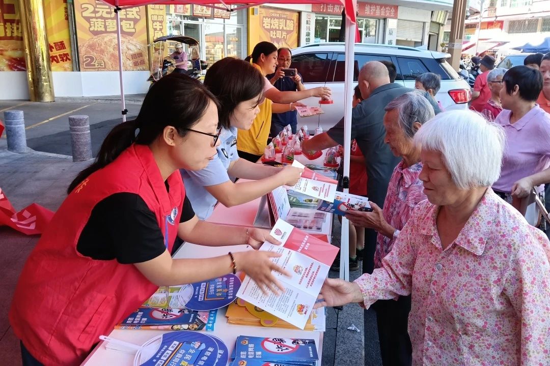 为提升广大人民群众禁毒、反诈、反走私意识,8月27日,蕉岭县禁毒办、县公安局深入蕉城镇新东北路社区超市及农贸市场,开展联合宣传,让安全知识随群众购物“打包带走”。