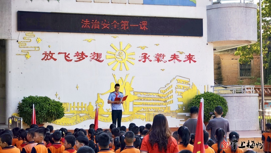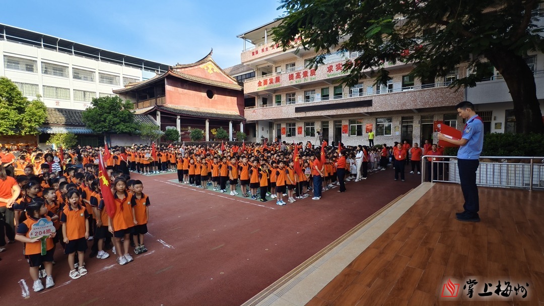掌上梅州讯 “同学们,当听到下课铃响,你们会立刻冲向楼梯吗?”开学当日,梅州师范学校附属小学的操场上响起了特别的提问声。新学期伊始,安全须先行。为守护学生健康成长,筑牢校园安全屏障,梅州市公安局梅江分局城西派出所副所长郭子谦作为法治副校长,以“筑牢安全防线,守护青春年华”为主题,为全体师生带来了一堂生动且意义深远的“开学第一课”。