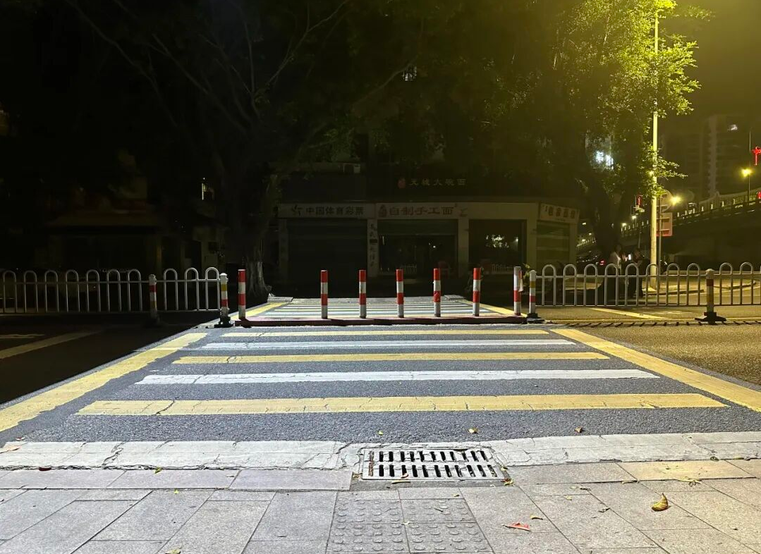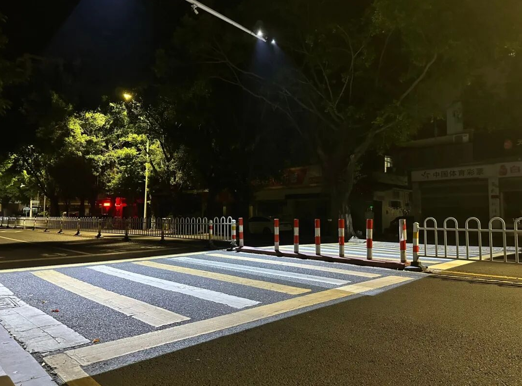 传统的白色斑马线,容易在黑夜、雨雾天等低能见度的环境下与漆黑湿滑的路面融为一体,存在较大的交通安全隐患。