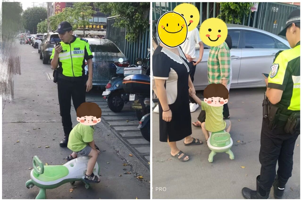 “哎呀好在有你们,我都到处找他,太感谢了。”10月4日傍晚正值晚高峰时段,巡特警铁骑队员巡逻至兴一广场路段时,突然发现一名幼童骑着扭扭车摇摇晃晃地脱离人行道,向车流不息的马路中央驶去,情况十分危急。