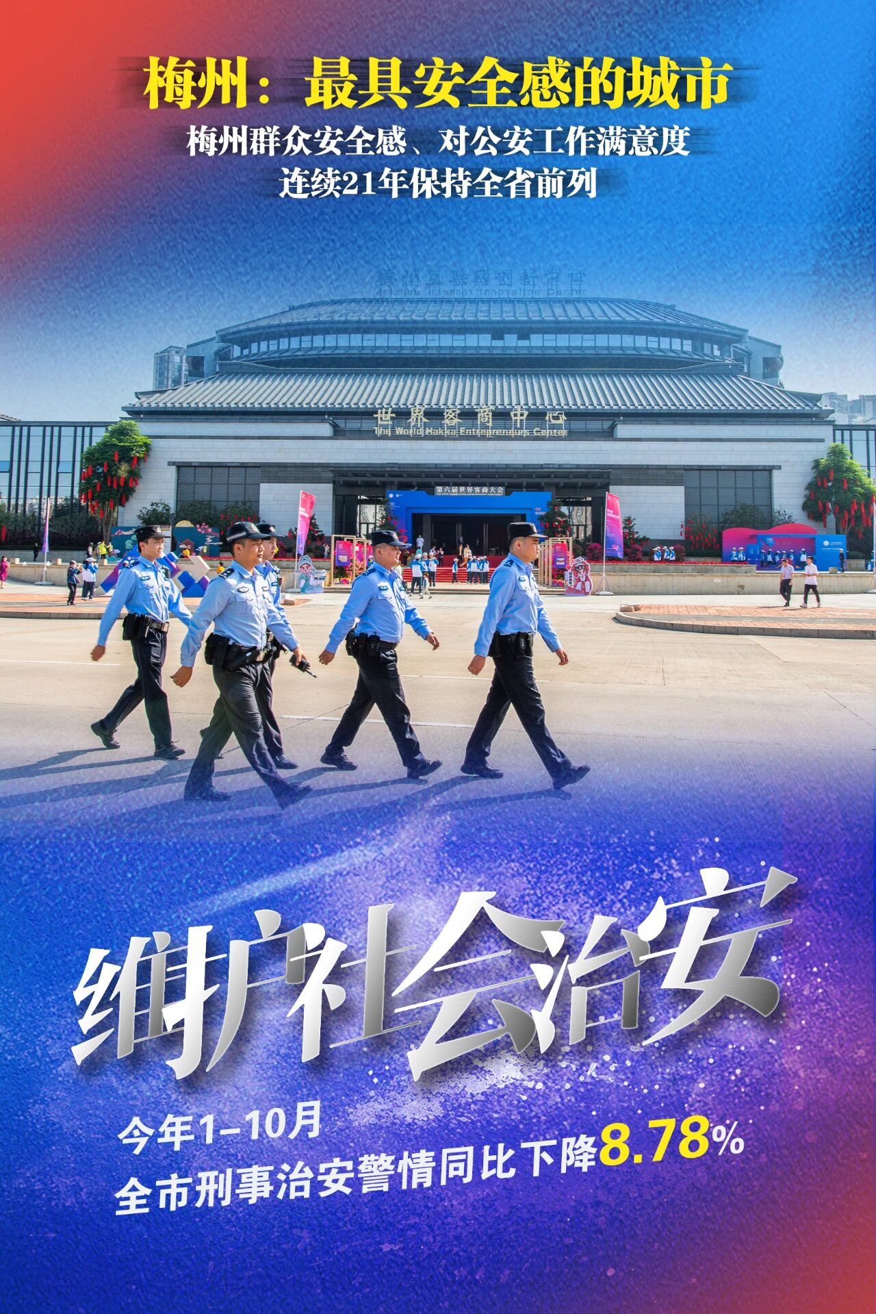 海报里的最美“警”色,带你感受梅州这座最具安全感的城市! 2025-11-01 17:53 平安梅州 8 梅州公安始终践行 以人民为中心的发展思想 用实干回应诉求 以担当守护平安 社会治安持续稳定 让“平安”可见可感 让“满意”深入人心 编辑:杨舒琳 审核:练海林