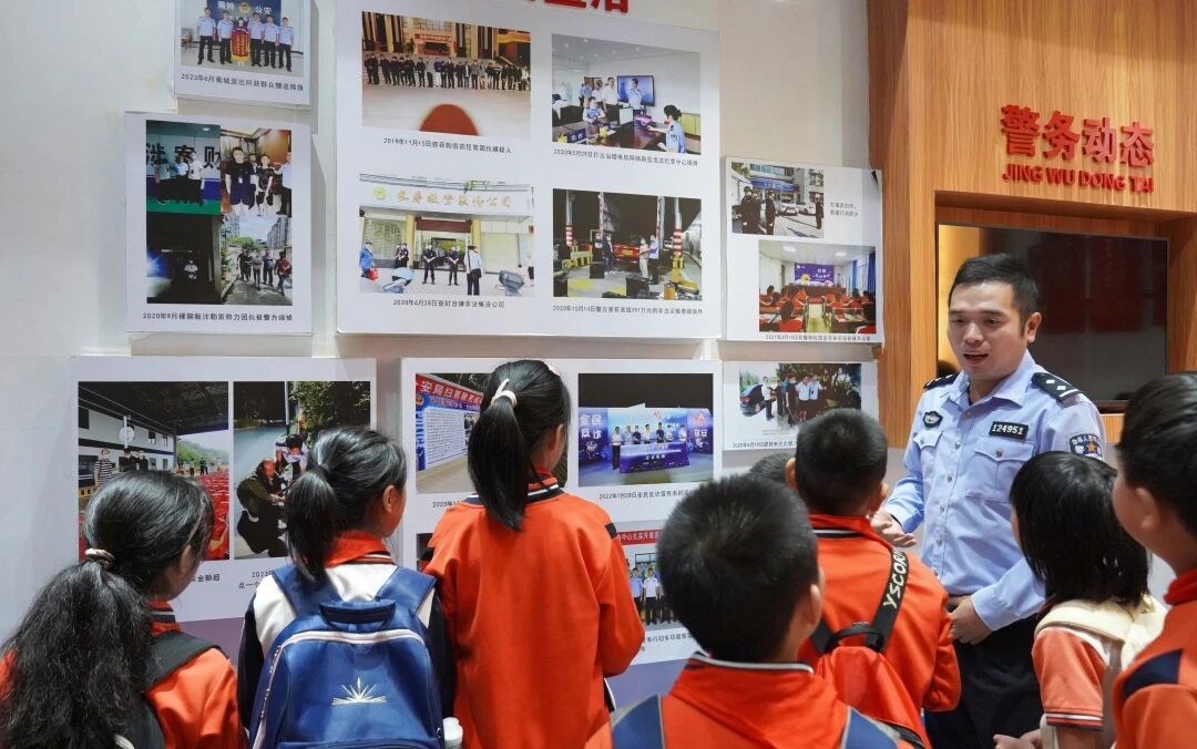 警史室内,一张张老照片、一段段奋斗故事被民警娓娓道来。从打击违法犯罪的果敢出击,到维护社会治安的日夜坚守,从交通秩序的精细管控,到服务群众的暖心瞬间,民警用生动案例还原了蕉岭公安的责任与担当,让孩子们读懂了藏蓝制服背后的使命重量。