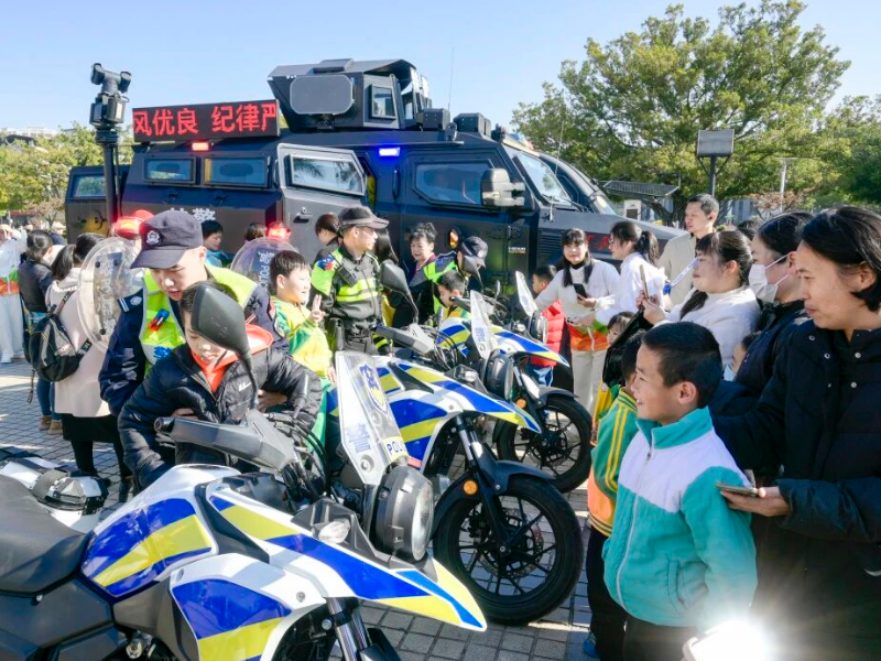 同日,兴宁公安在文化广场开展“110”主题宣传活动,为群众送上满满的安全“干货”。活动现场,各警种结合职能优势,构建全方位、立体化的宣传矩阵,通过布设主题展板、发放宣传资料、细节讲解常见案例、现场答疑、现场演示等大众喜闻乐见的方式,全面普及110报警服务、交通安全、反诈防骗、识毒禁毒、网络安全、防盗防火等知识和技能,将安全防线前移到群众身边。群众络绎不绝,现场氛围热烈融洽。