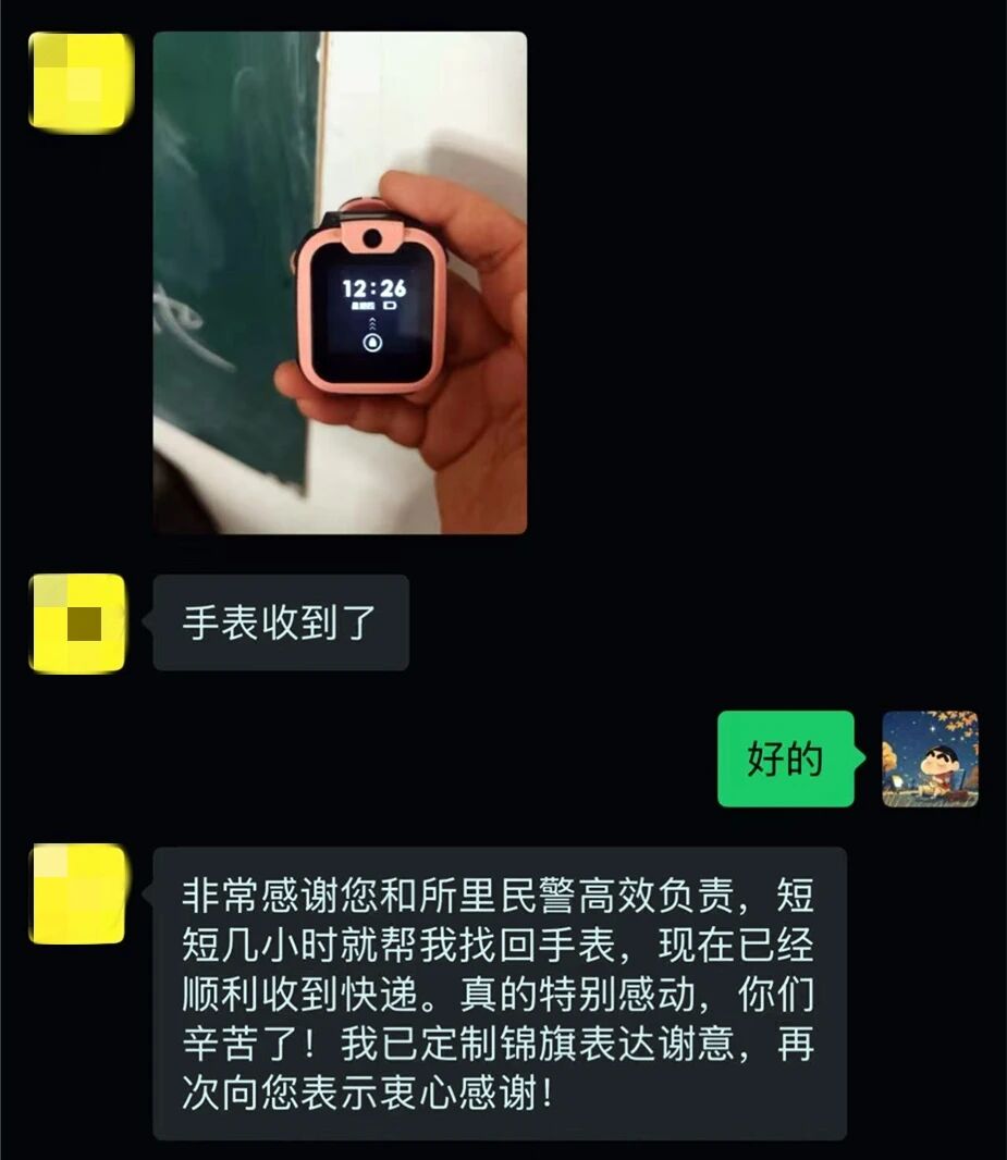 信息发布后不久,一位热心老人主动联系村干部,称自己此前经过高铁西站附近时,捡到过一块儿童电话手表。因不懂操作智能设备,无法联系上失主,便将手表带回了家中保管。经核对,老人捡到的正是事主女儿遗失的手表。在民警协调下,村干部将手表寄往惠州。