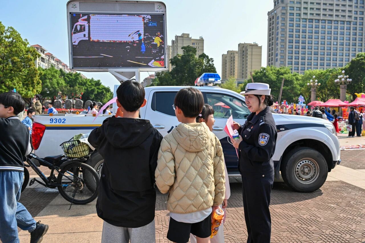 活动现场,交通安全宣传车上播放的事故视频不断吸引青少年驻足观看,画面中一个个鲜活的案例让他们触目惊心,民警站在他们身边,耐心为他们分析讲解每一起事故背后的原因和交通安全知识。