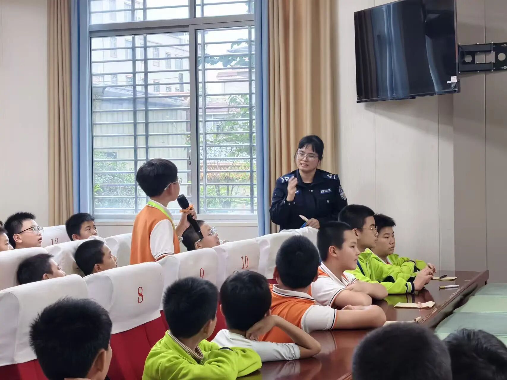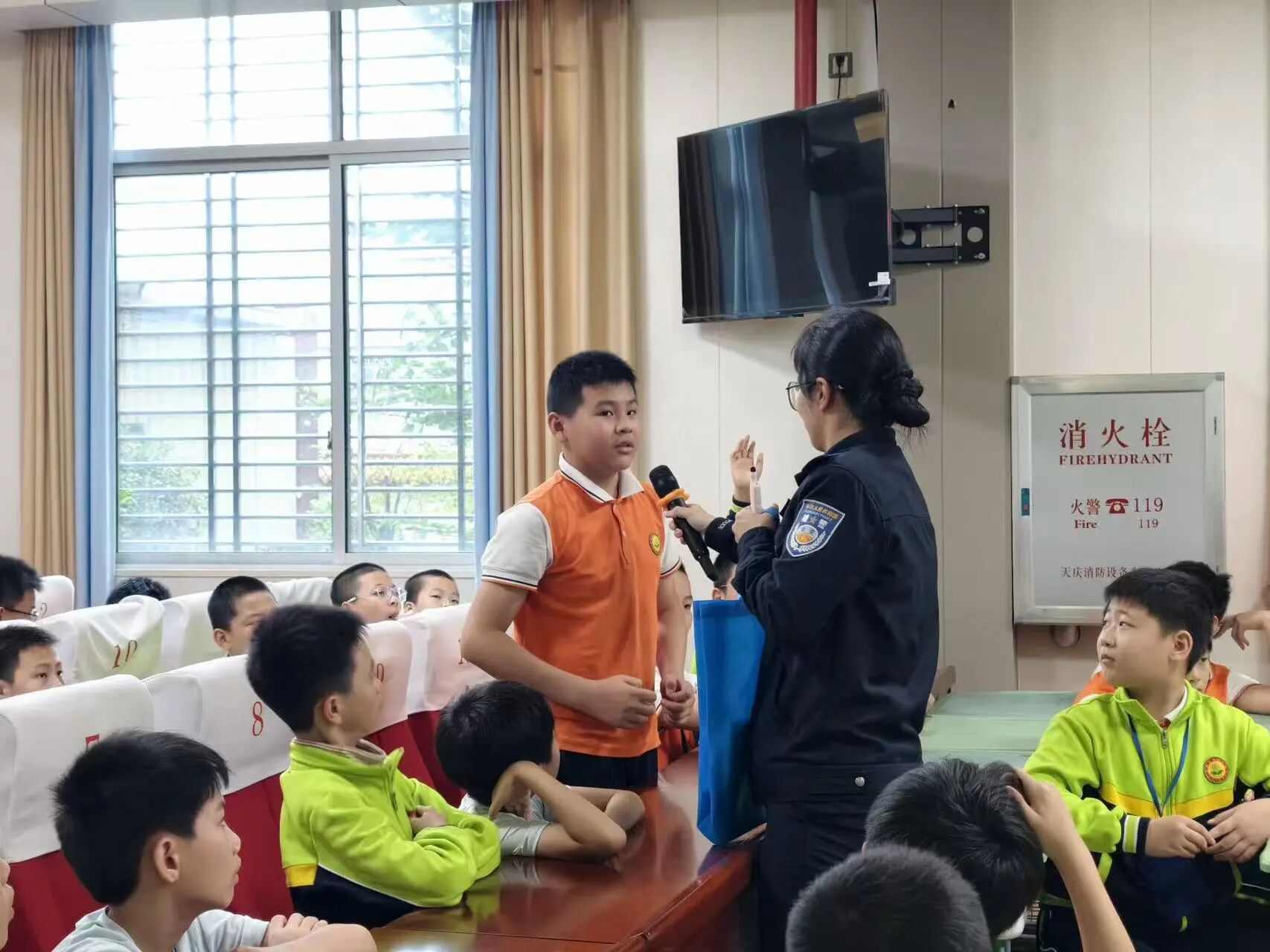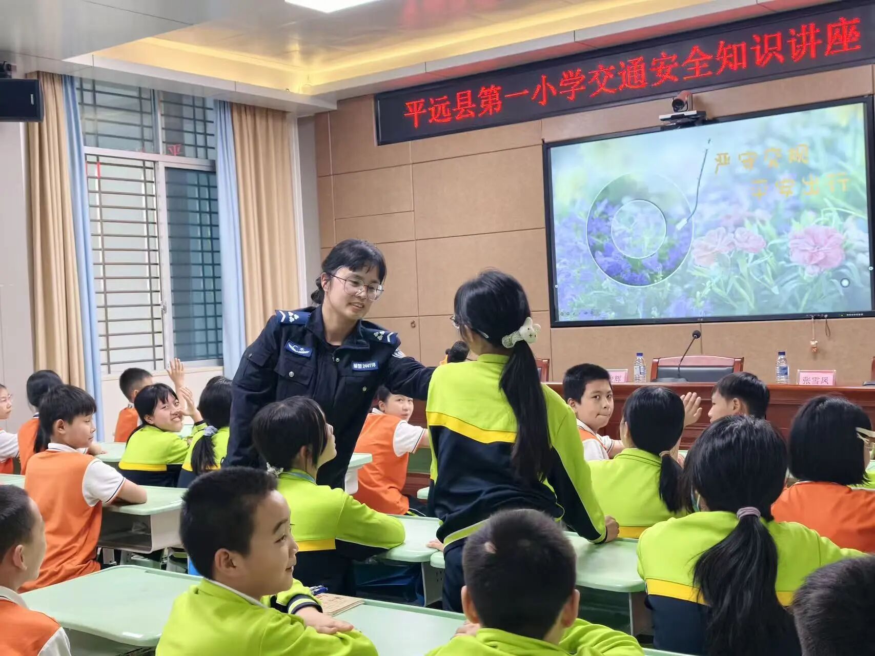 宣讲课堂上,气氛格外热烈。民警俯下身、贴近孩子,用亲切又易懂的方式讲解安全知识,现场互动不断。“小朋友们,过马路的时候我们最应该注意什么呀?”“一停、二看、三通过!”孩子们齐声回答。