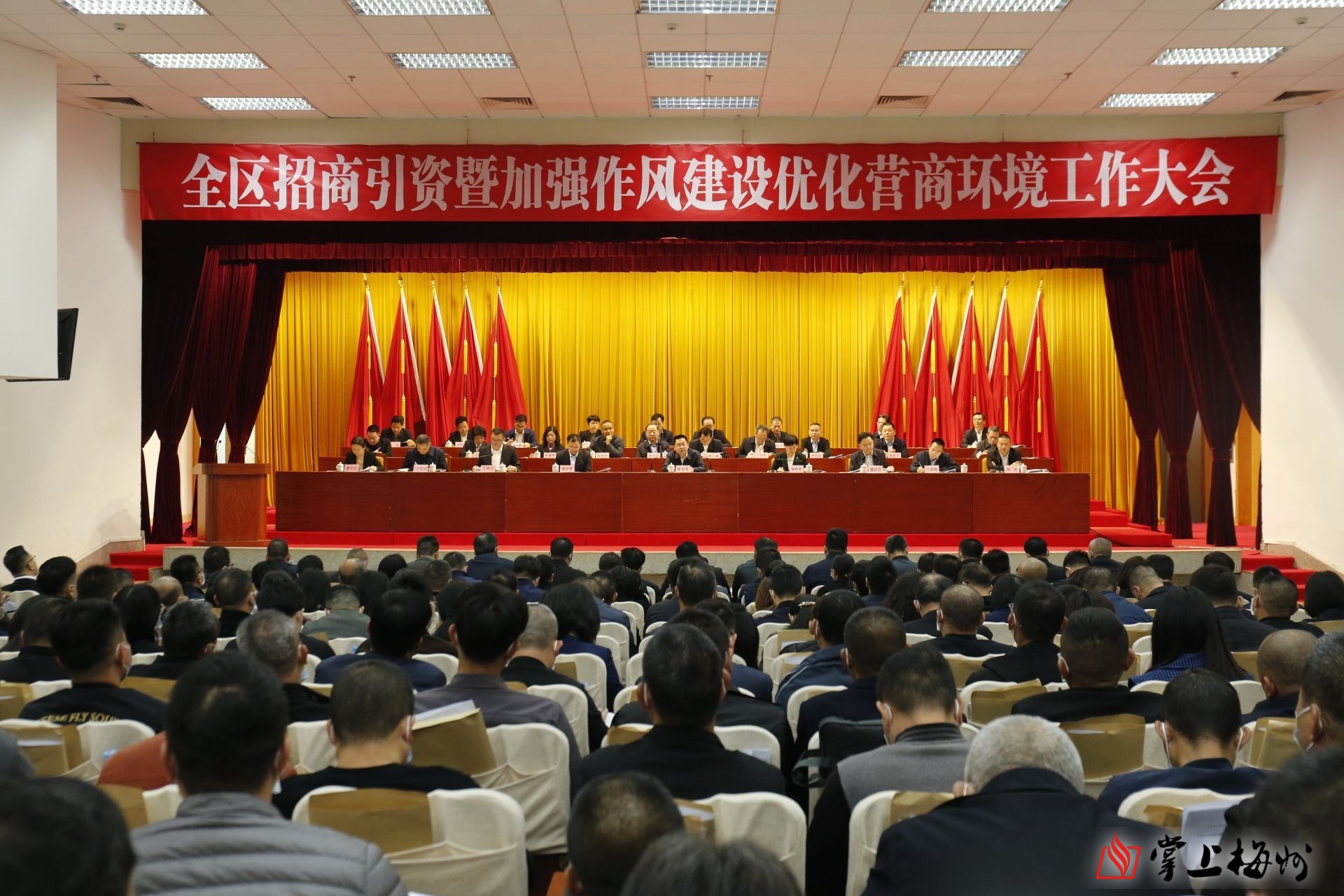 梅江区召开全区招商引资暨加强作风建设优化营商环境工作大会。(陈绮冰 摄)