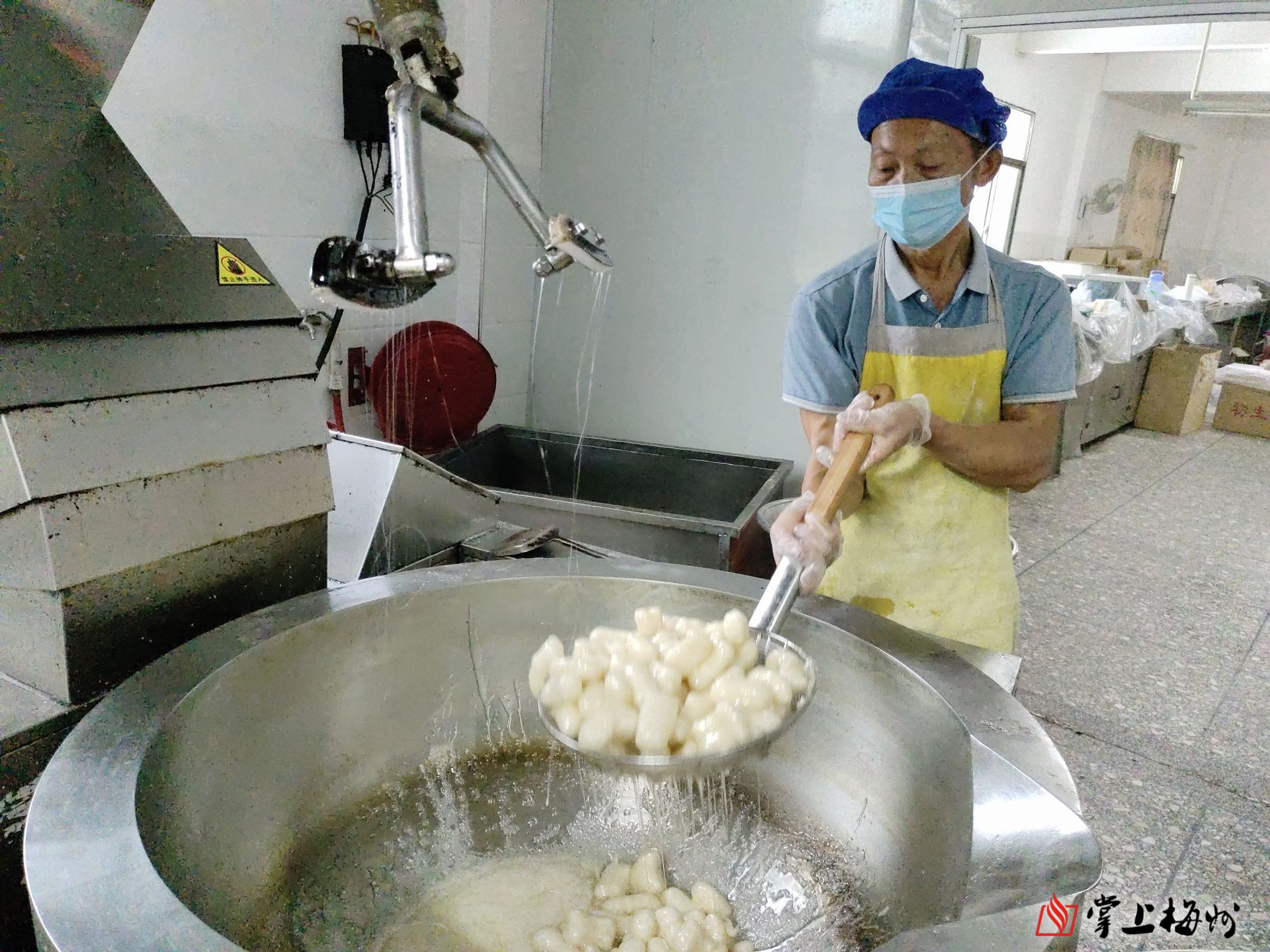 走进位于罗岗镇的梅州市贵和兴食品有限公司生产车间,阵阵香味扑鼻而来。“我家五代都是糕饼手艺人,我从小就看着爸爸、爷爷制作蓼花,早早就学会了制作技艺。”说起与蓼花结缘的故事,传承人曾宪强侃侃而谈。
