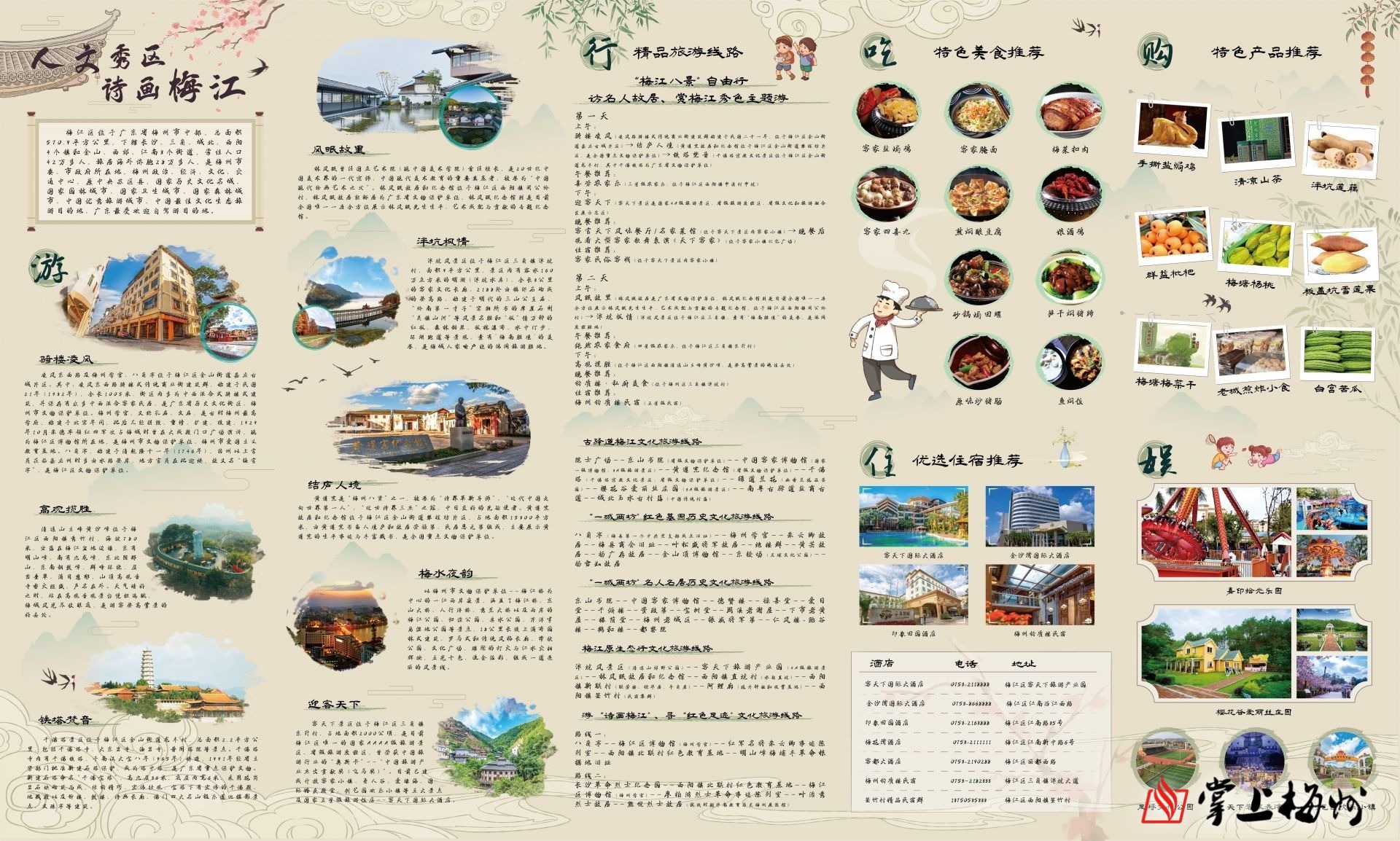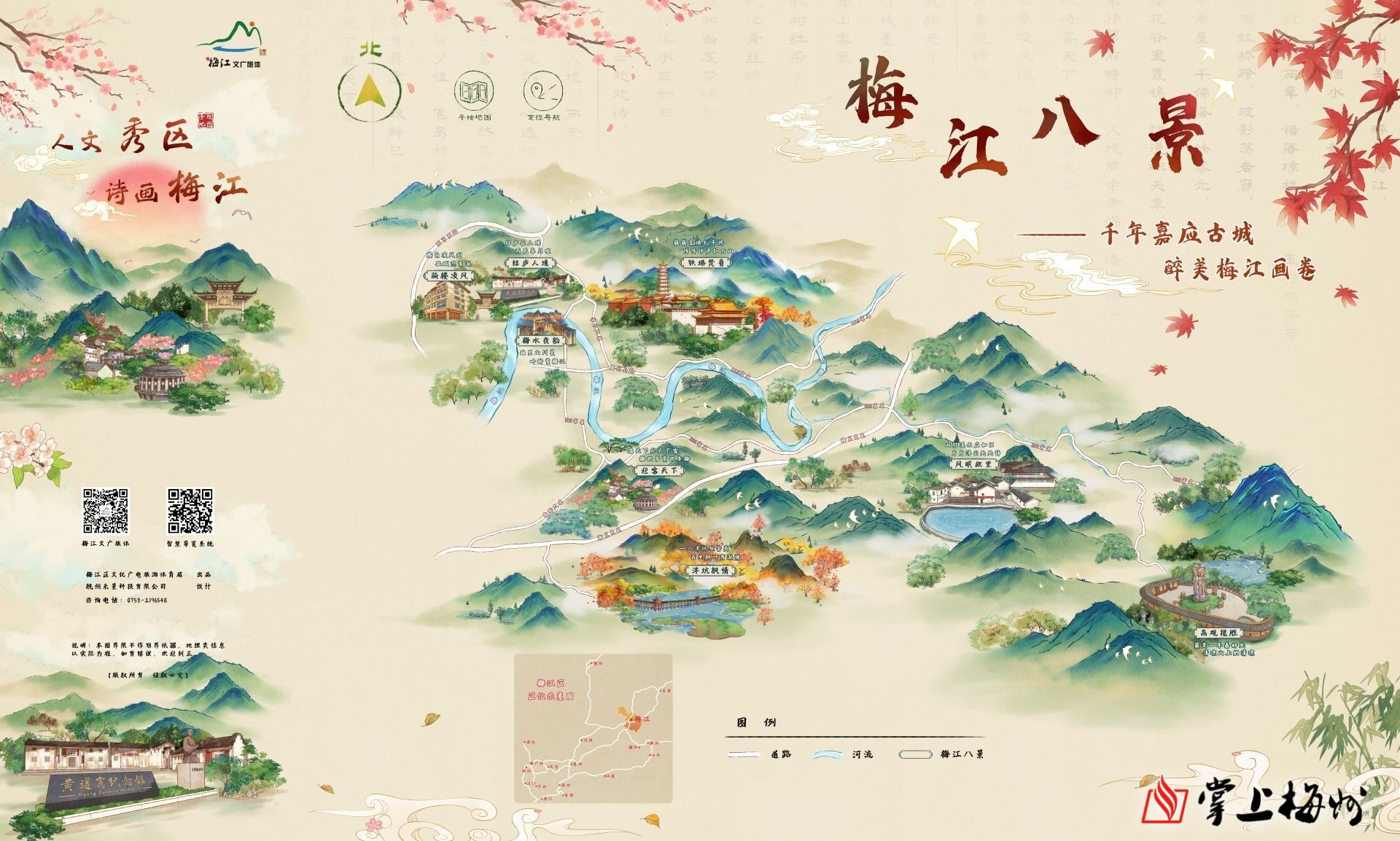 “梅江八景”自由行精品旅游线路示意图。