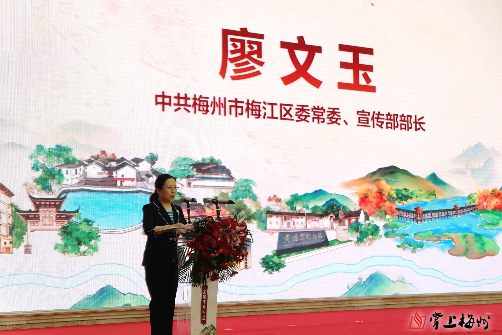 梅江区委常委、宣传部部长廖文玉致辞。