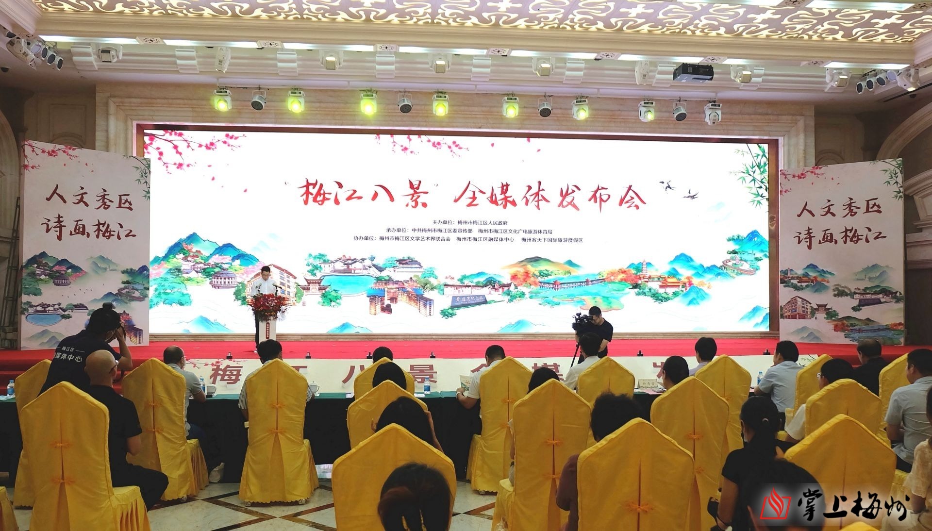 掌上梅州讯 5月31日,由梅江区政府主办,梅江区委宣传部、梅江区文化广电旅游体育局承办的“梅江八景”全媒体发布会在客天下举行。梅江区区长钟秀堂,市政府办公室三级调研员沈省华,市委宣传部二级调研员刘建丰,市文化广电旅游局四级调研员黄剑锋,市文联四级调研员马苑华,梅江区委常委、宣传部部长廖文玉,市旅游协会会长谢斌等参加发布会。