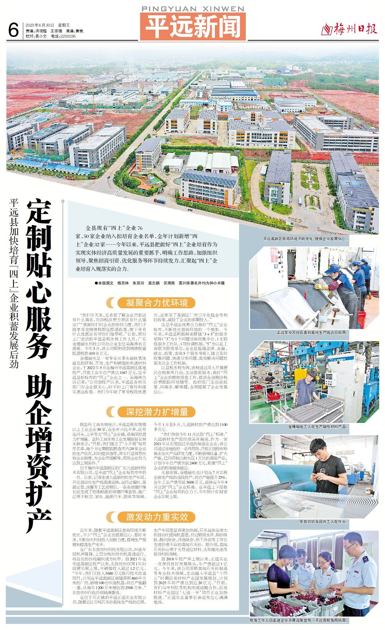无独有偶,金雁磁电也计划在7月实现全新生产线的连线投产,将总产能提升25%,全年工业产值突破3000万元,最快在今年9月达到“四上”企业标准。在平远上下促推“四上”企业培育的合力下,今年预计有32家企业实现上规。
