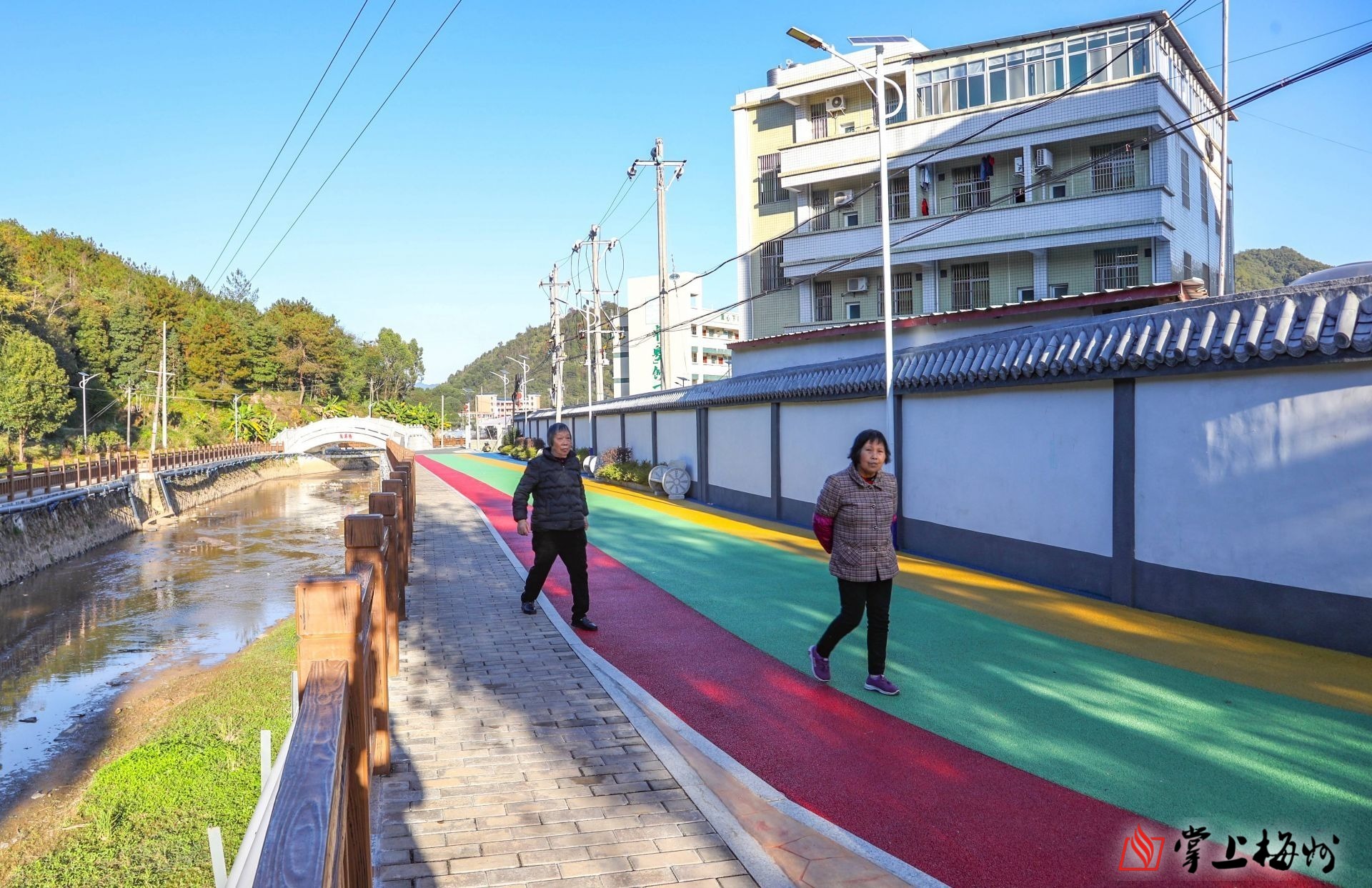 广福圩镇彩虹步道上,散步的居民三三两两,好不惬意。