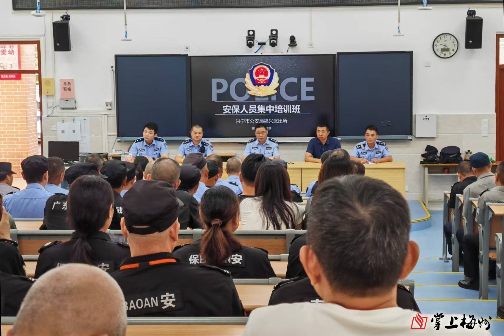 兴宁市实现教育系统保安员培训全覆盖。图为福兴街道开展最小应急单位培训。(福兴街道供图)
