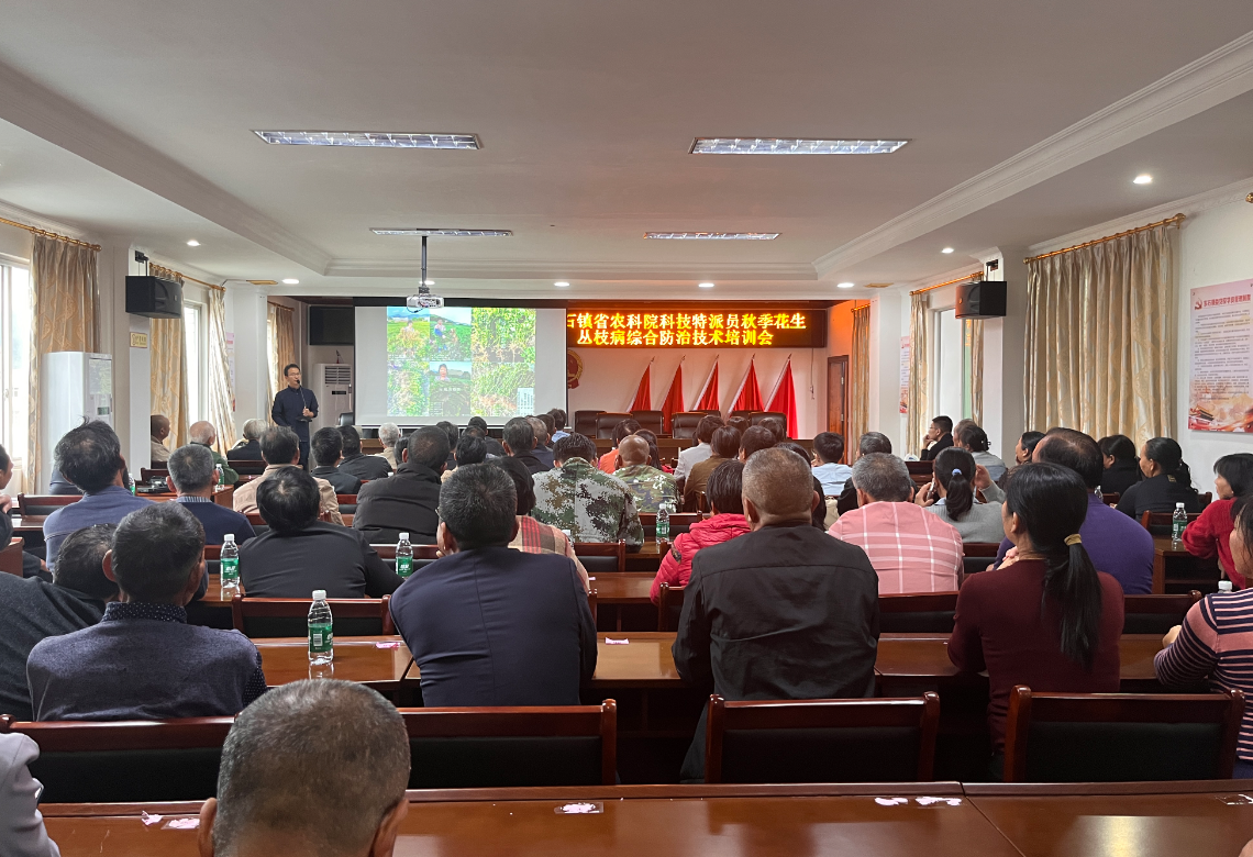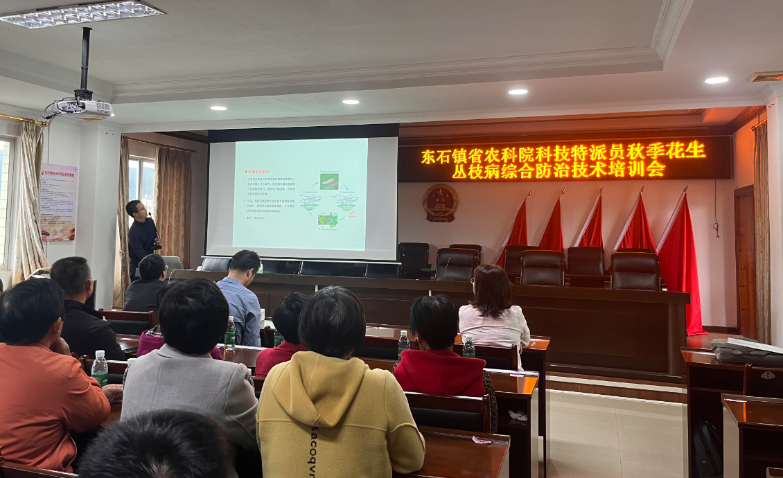 本次培训由广东省农业科学院作物研究所派驻东石镇的农村科技特派员团队与驻镇帮镇扶村工作队共同组织,特邀广东省农业科学院植物保护研究所孙大元副研究员作专题报告。广东省农业科学院梅州分院、梅州市农林科学院粮油研究所等相关单位也派员参与。