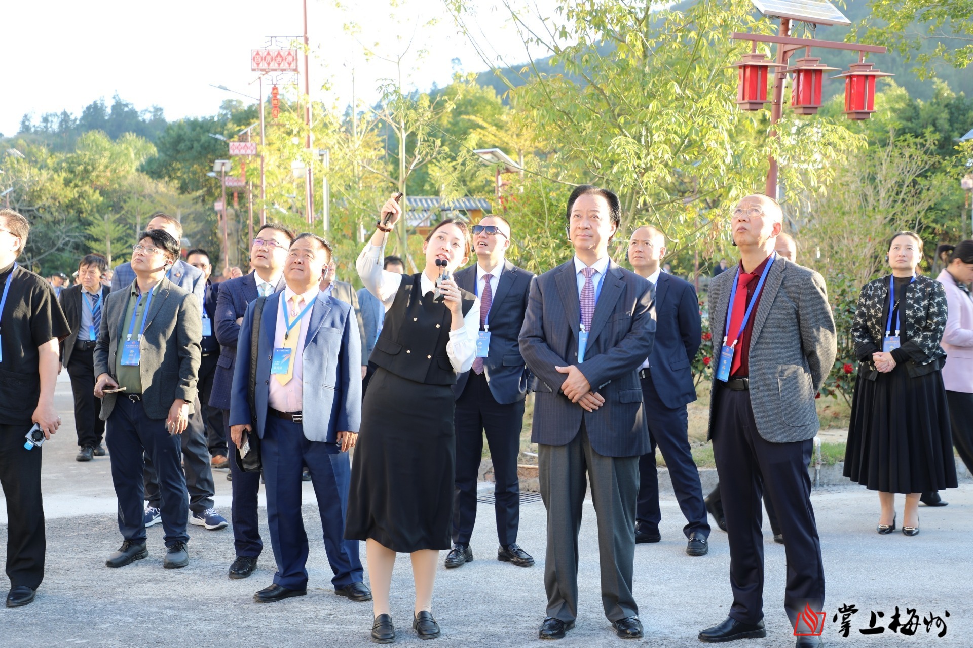 11月24日下午,出席招商推介会的嘉宾客商们深入中国历史文化名镇——百侯镇参观考察,实地感受大埔高质量发展的强劲脉搏。在全国重点文物保护单位肇庆堂内,古色古香的楼宇、精雕细琢的图案,让嘉宾客商们深深感受到大埔悠久的文化传承。大家或驻足研究墙上的图案,或拿出手机合影留念,或认真阅读简介资料,不时发出由衷的赞叹。