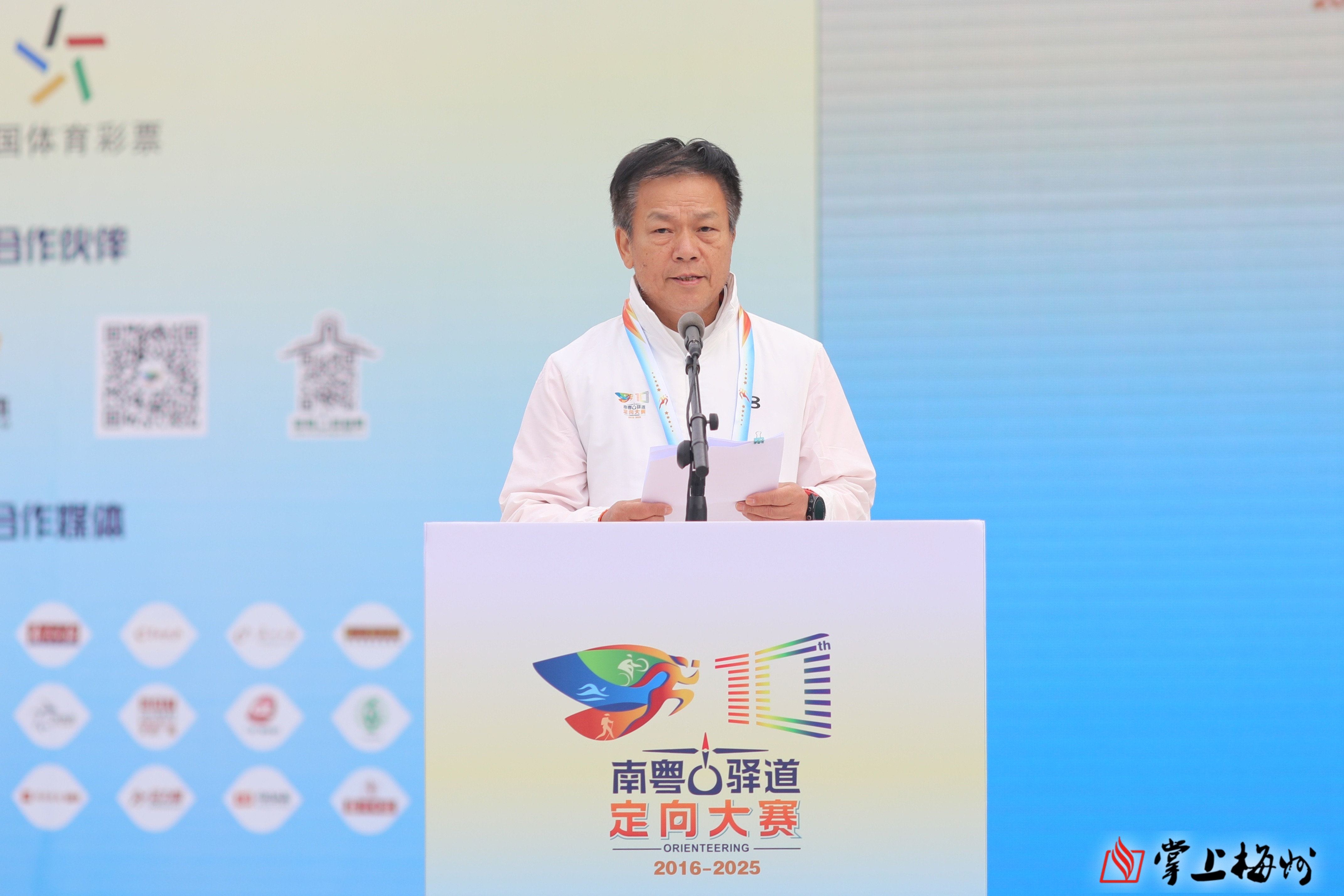易洪陶在致辞中表示,2016年广东启动南粤古驿道保护活化利用行动,定向大赛同年首办并成为核心组成。2025年赛事迎来连续举办十周年,同时定向运动首次纳入全运会群众赛事,广东诞生首金。本次大赛既是驿道保护活化十周年的庆典之举,呼应十五运会全民健身热潮,更肩负着红色传承的使命。平远的古驿道是红色记忆的“活化石”,赛道串联起红色地标与驿道遗迹,期盼以赛事为桥,让“全民健身 绿色先行”理念扎根老区,彰显东道主担当。