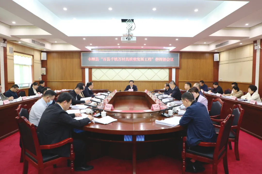 近日,丰顺县“百县千镇万村高质量发展工程”指挥部会议召开,听取前期工作情况汇报,研究部署下一阶段工作,动员全县上下要锚定目标、扛牢责任,聚力攻坚“百千万工程”,推动城乡区域协调发展取得新成效。丰顺县委书记张志锋主持会议并讲话,县委副书记、县长凌望远,县人大常委会主任邱翠茂,县政协主席李瑞金,县委副书记、政法委书记张晓山出席会议。