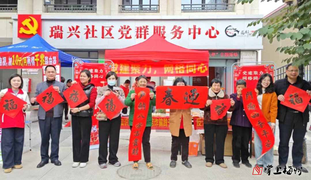 掌上梅州讯 1月26日,梅江区西郊街道瑞兴社区联合中国邮政储蓄银行、碧桂园生活服务集团股份有限公司和中国移动通信集团,依托社区“友邻生活节”平台,在瑞兴社区新时代文明实践站及正兴城小区开展“客都春暖·党群连心——欢欢喜喜过大年”主题活动。