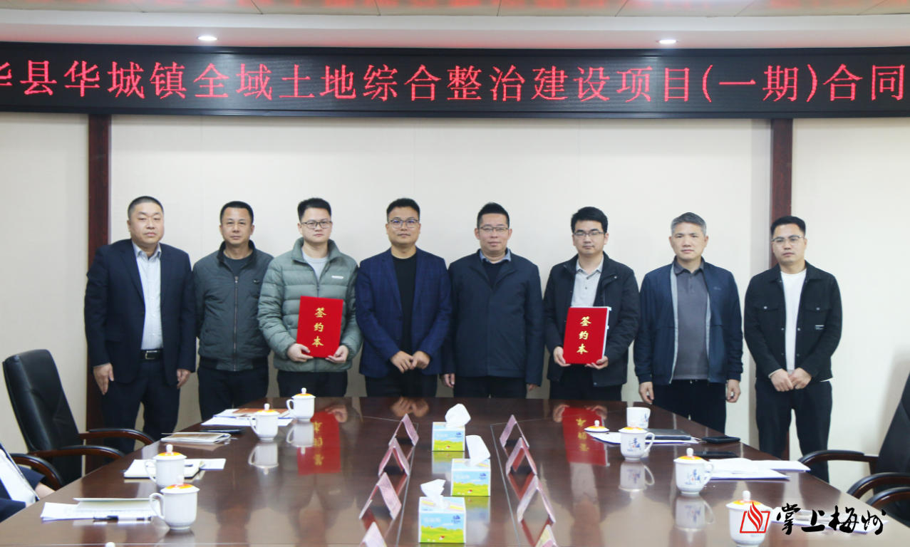 掌上梅州讯 1月27日上午,梅州市五华县华城镇全域土地综合整治建设项目(一期)签约仪式在华城镇人民政府会议室举行。此举标志着华城镇在深化落实“百千万工程”、全面推进乡村振兴战略上取得关键性进展。华城镇主要负责同志、县镇国企和项目参建单位负责同志等参加仪式。