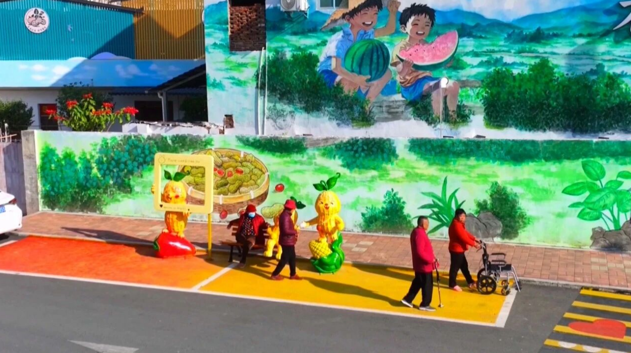 东石镇“百千万工程”办公室 钟美玲:地面用彩色涂鸦写满“心想事成”“前程似锦”等祝福,还有可爱的花生人偶雕塑,让整条街既有乡土气息,又充满青春活力,吸引了很多年轻人打卡。