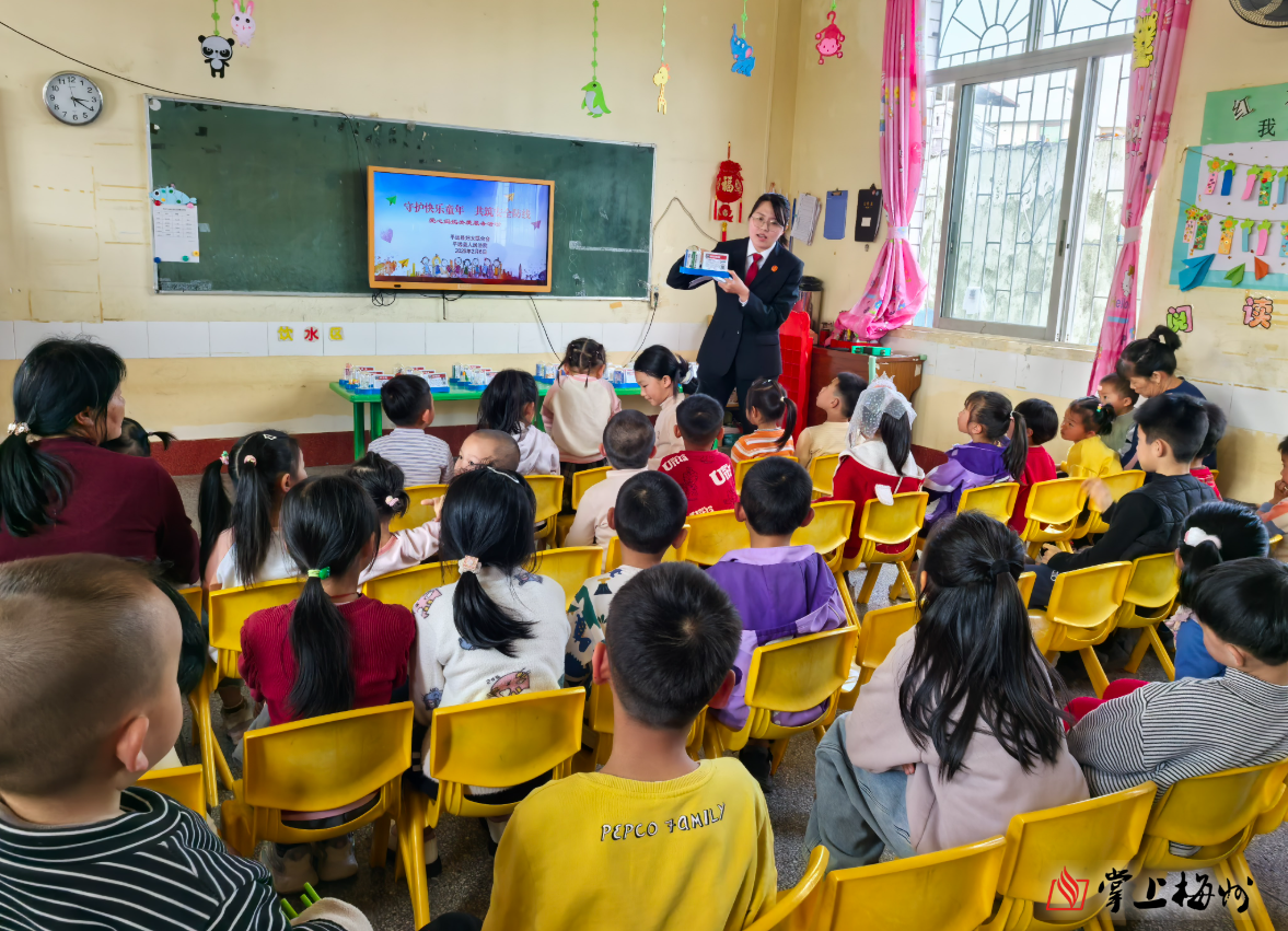 掌上梅州讯 近日下午,平远县法院联合县妇联、团县委,在平远县大柘镇程北村共同举办“把爱带回家——暖心护航伴成长”2026寒假儿童关爱服务活动,为百余名儿童及家长带来了一堂生动实用的寒假安全法治课。