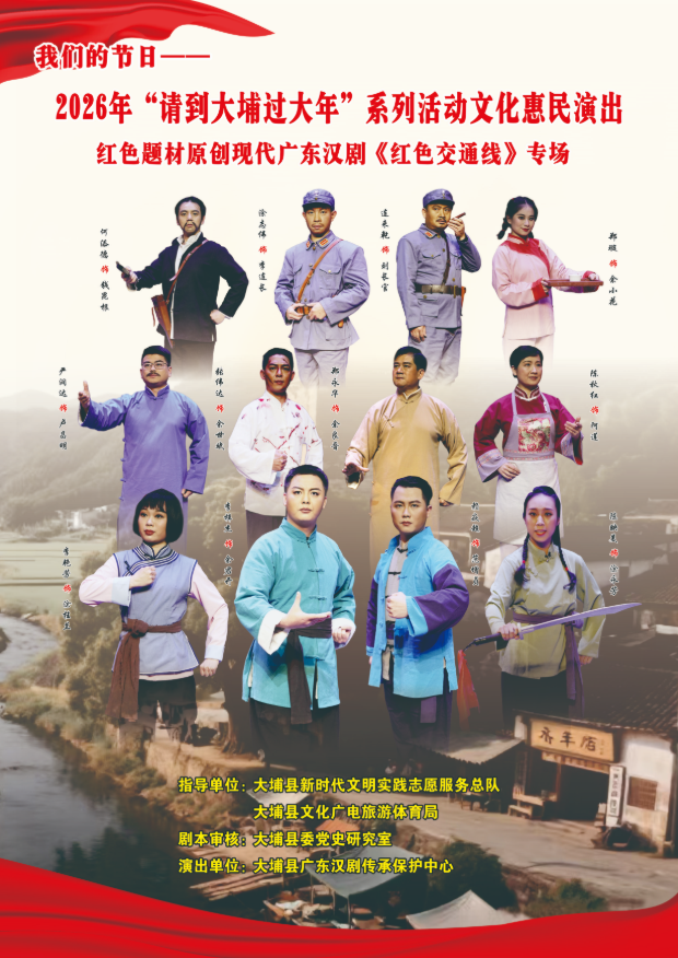 据了解,该活动由大埔县新时代文明实践志愿服务总队、大埔县文化广电旅游体育局指导,大埔县委党史研究室剧本审核,大埔县广东汉剧传承保护中心演出,旨在从多个角度、多个层面再现中央红色交通线的光辉历程,深入挖掘大埔本地丰富的革命历史资源。通过艺术化的舞台呈现,生动展现当年大埔苏区人民为守护中央红色交通线安全畅通、支援革命事业所作出的重要贡献。