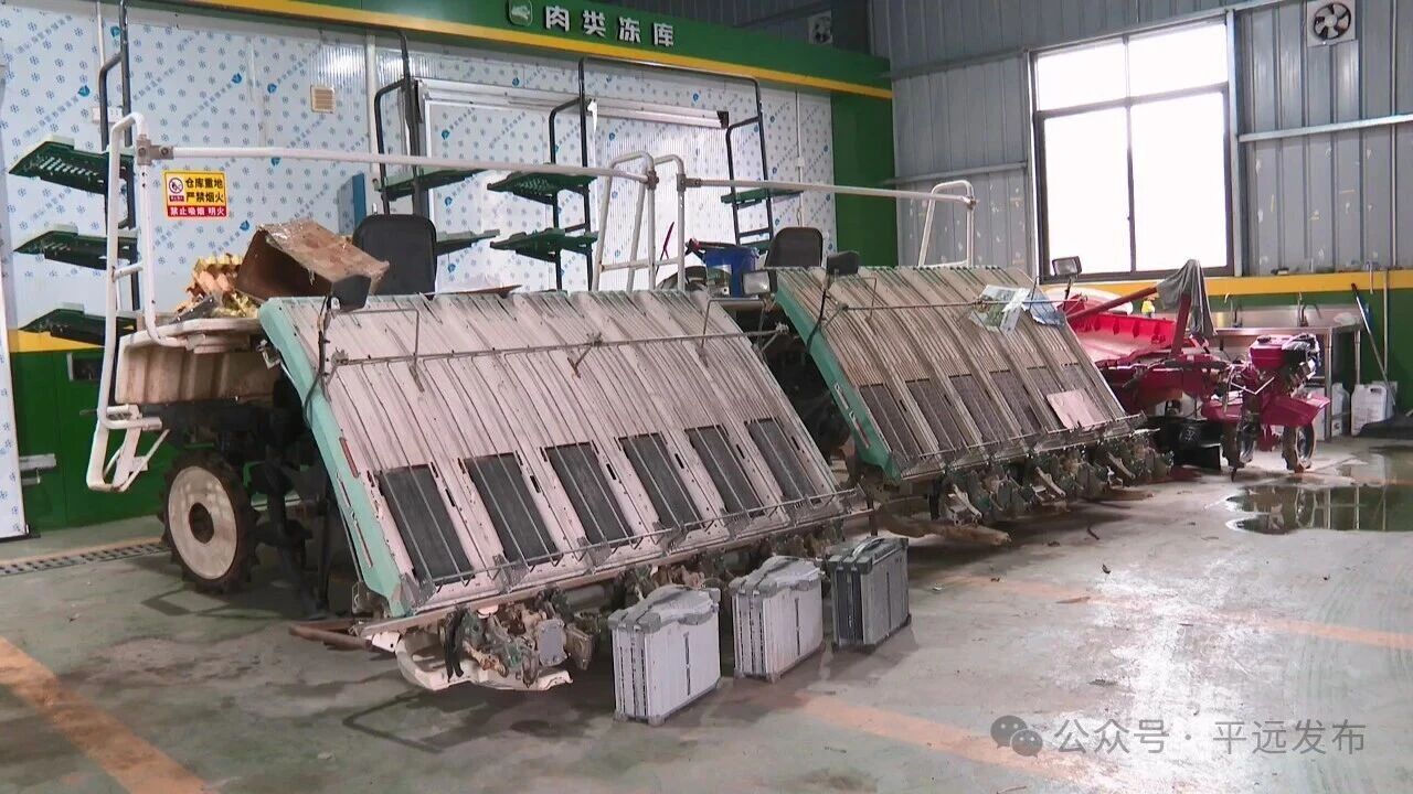 在县社村合作农业发展有限公司的农资仓库内,插秧机、收割机、拖拉机、农业植保无人机等各类农机具整齐排列,蓄势待发。仓库内,工作人员正忙着清点整理农资产品,确保每天不间断地将农资配送至各乡镇销售网点,方便群众就近购买。