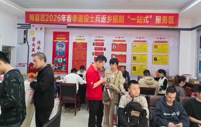 3月2日,梅县区2026年春季退役士兵返乡欢迎仪式在区退役军人服务中心举行,欢迎退役士兵光荣返乡。