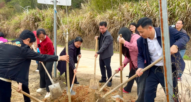 户外植树现场一片繁忙,婆媳们携手并肩、分工协作,挥锹铲土、扶苗填坑、浇水培土,默契配合种下黄花风铃木、小青柑树等苗木。大家共同挂上“巾帼林”“家庭林”标牌,让优良家风与绿色希望相伴扎根,让绿色理念融入家庭,为建设生态宜居美丽乡村再添新绿。