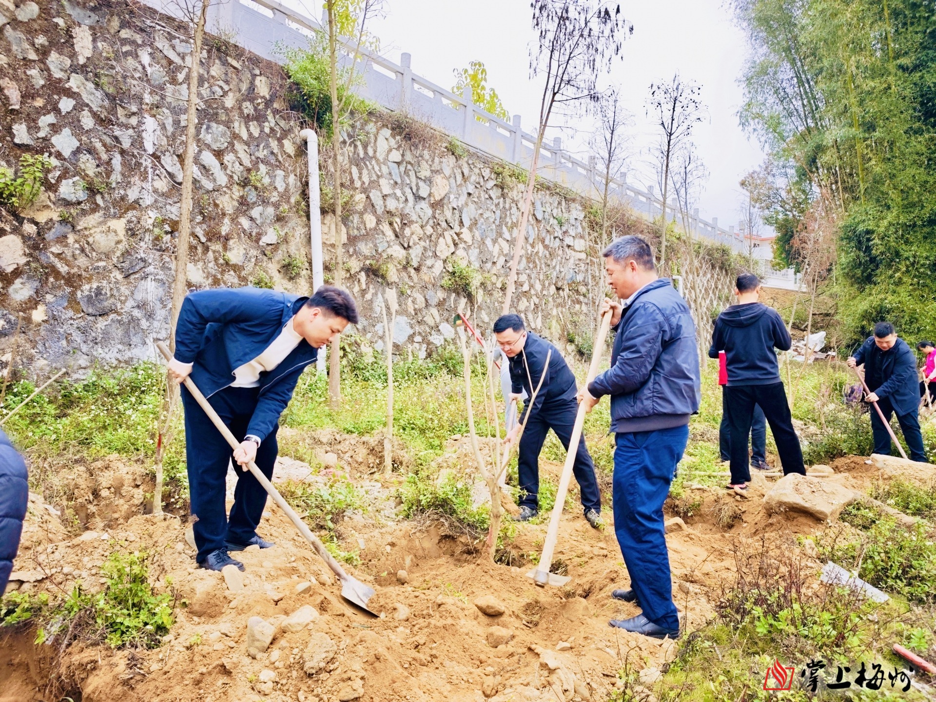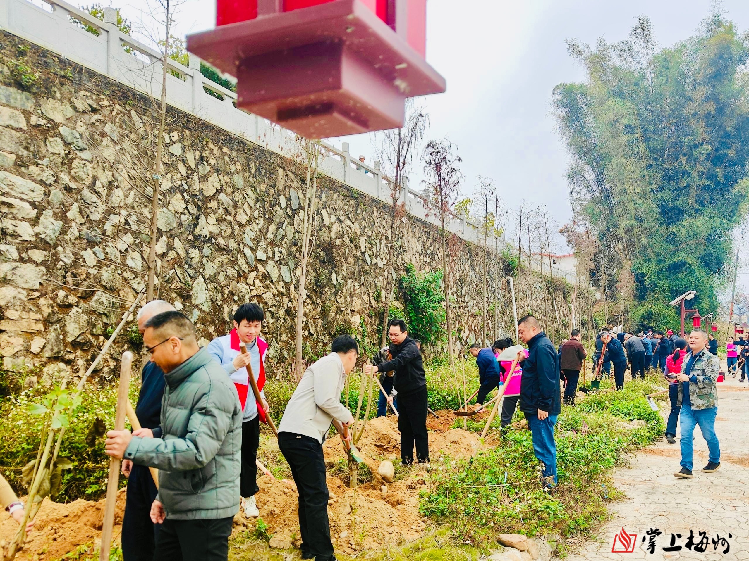 掌上梅州讯 3月11日上午,大埔县百侯镇组织开展2026年全省乡村绿化主题植树活动,镇党政主要领导率先垂范,与领导班子成员、各村党组织书记、林业部门业务骨干、党员志愿者及群众代表等共计80余人齐聚百侯圩镇一河两岸生态廊道,以实际行动践行增绿护绿使命,迅速掀起全民植树造林、共建绿美家园的浓厚氛围。