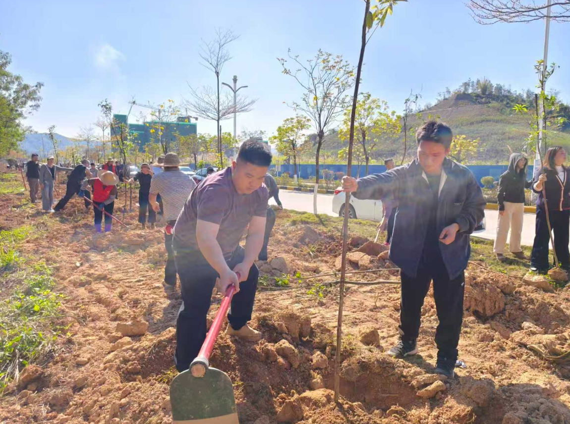 在党员干部的带领下,志愿者们热情高涨、干劲十足,一抹抹“志愿红”与一片片“新叶绿”相映成趣,成为春日里一道靓丽的风景线。大家三五成群、分工协作,挥锹铲土、扶苗培土、浇水保墒……各个环节配合默契、有条不紊。500株新栽的树苗整齐排列、迎风而立,为高陂大地增添了蓬勃生机。
