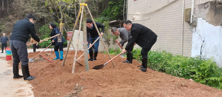 培训结束后,随即开展植树实操活动。现场人员热情高涨,分工协作,挥锹培土、扶苗压实,各环节衔接有序、配合默契,现场呈现出一派热火朝天的劳动景象。经过大家共同努力,新植苗木整齐挺立、焕发勃勃生机,为泮坑村增添了一道清新绿意,也使绿美乡村建设的理念在实践中得到生动体现。