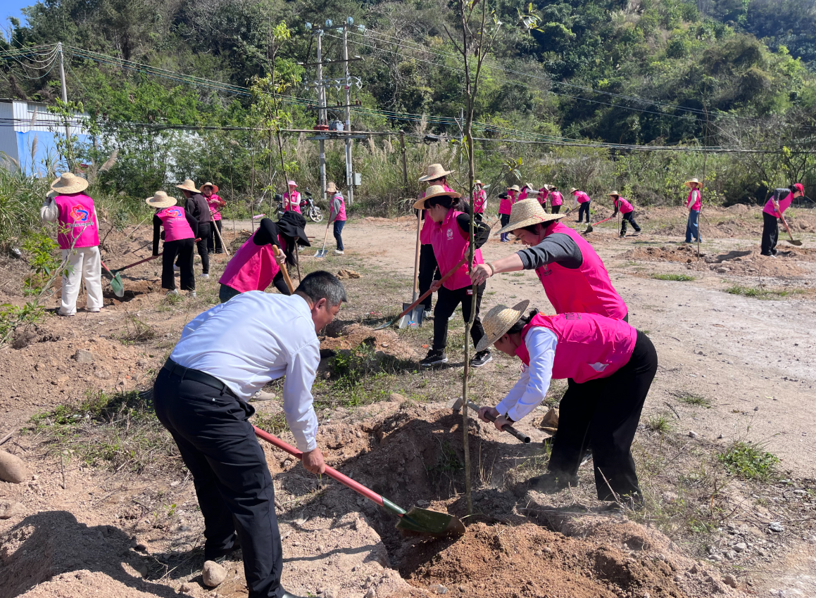 掌上梅州讯 3月12日,大埔县妇联组织干部职工前往“美丽庭院”特色村——百侯镇侯南村开展义务植树活动,以“巾帼红”点亮“生态绿”,为乡村振兴增添了一抹亮丽的底色。