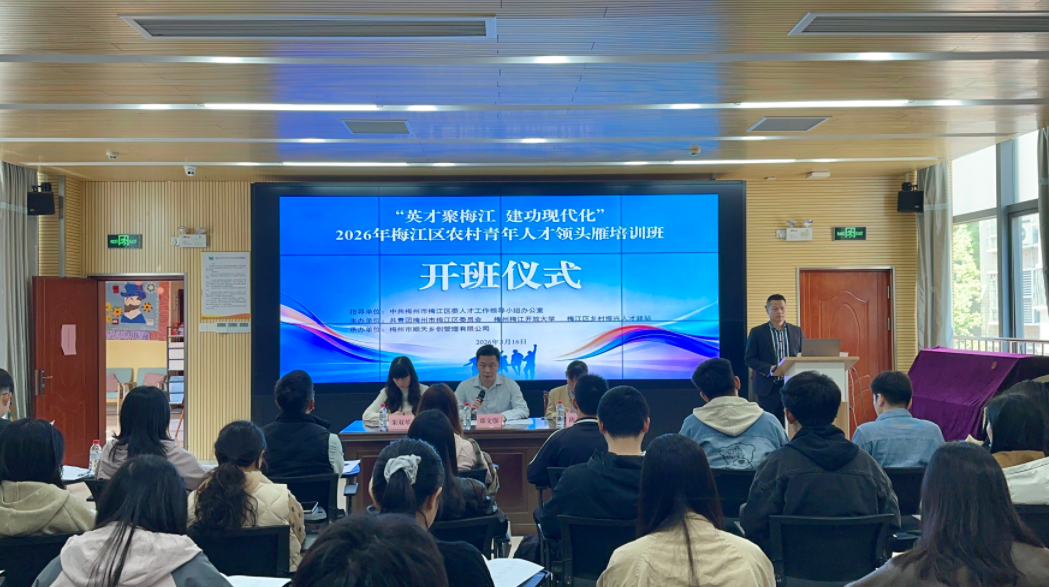 掌上梅州讯 春潮涌动催人进,青年育才正当时。3月16日,“英才聚梅江 建功现代化”2026年梅江区农村青年人才领头雁培训班在梅城举办。此次培训在中共梅州市梅江区委人才工作领导小组办公室的指导下,由共青团梅州市梅江区委员会、梅州梅江开放大学、梅州市梅江区乡村振兴人才驿站主办,梅州市顺天乡创管理有限公司承办。来自梅江区的农村青年创就业人才、返乡大学生、“百千万工程”专项行动志愿者等40人齐聚一堂,开启为期一天的“理论+实践”沉浸式学习之旅。