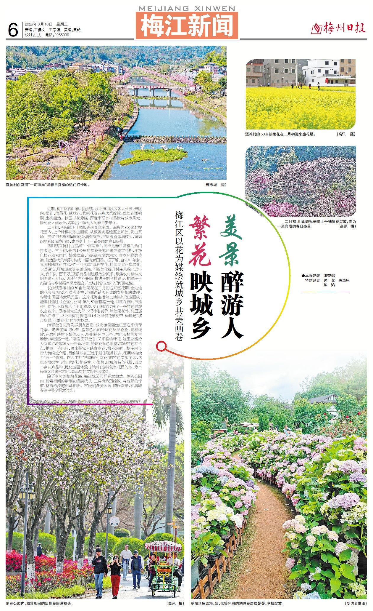 近期,梅江区西阳镇、长沙镇、城北镇和城区各大公园、景区内,樱花、油菜花、绣球花、紫荆花等花卉次第绽放,处处花团锦簇、生机盎然。该区以花为媒,深度串联乡村美景与城市风光,推动农文旅融合,勾勒出一幅动人的春日美景图。