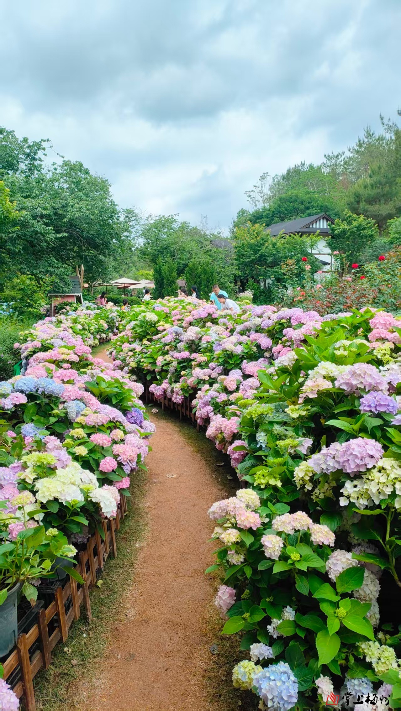 爱丽丝庄园粉、紫、蓝等色彩的绣球花层层叠叠、竞相绽放。(受访者供图)
