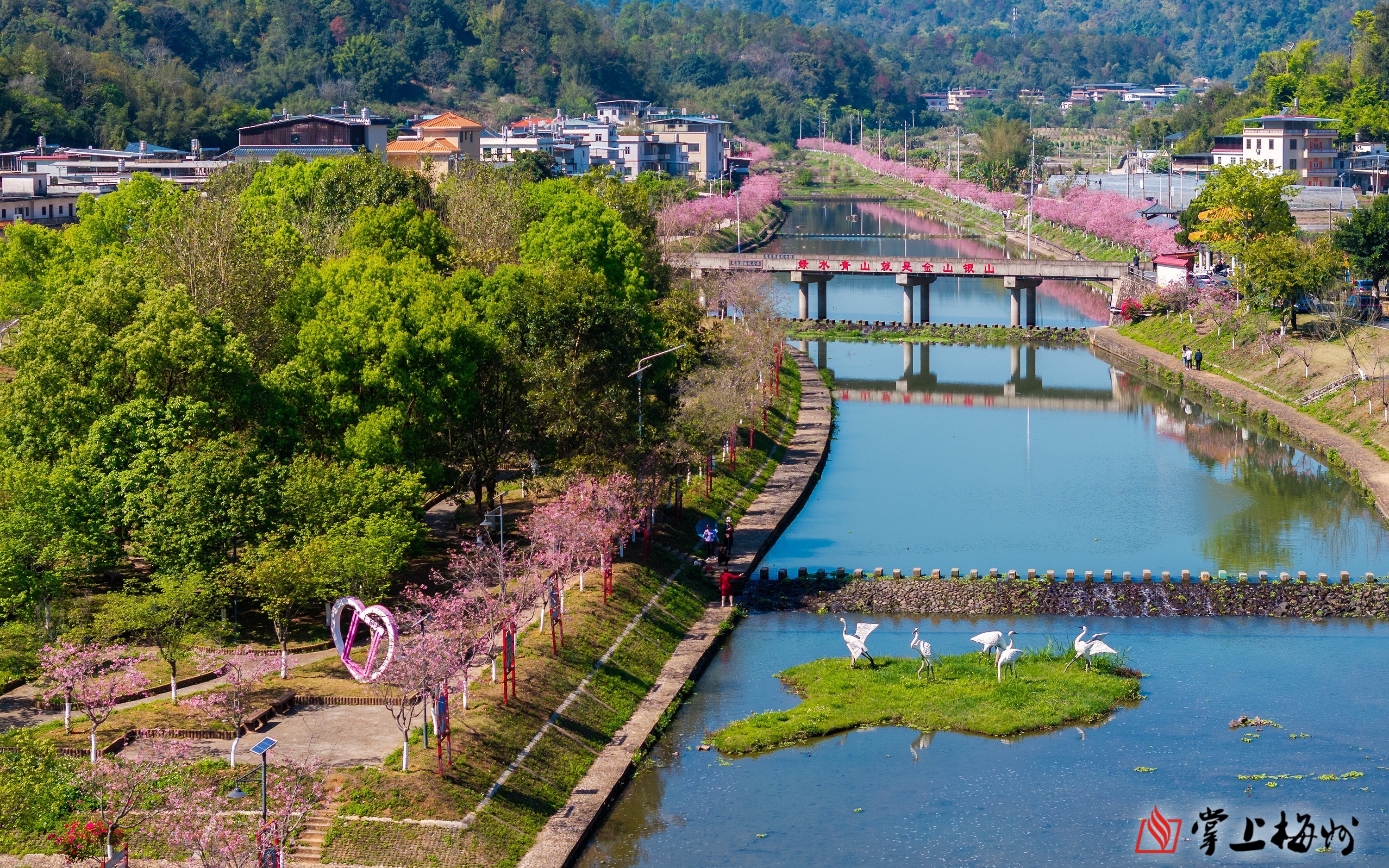 直坑村白宫河“一河两岸”是春日赏樱的热门打卡地。(连志城 摄)
