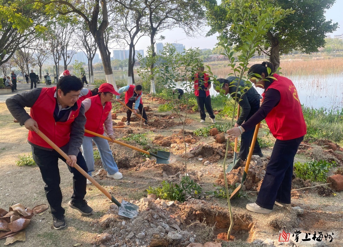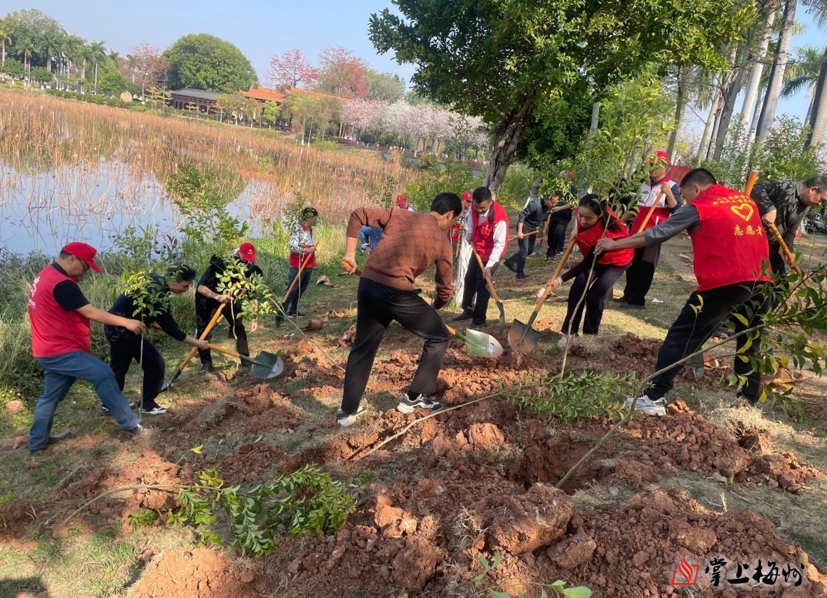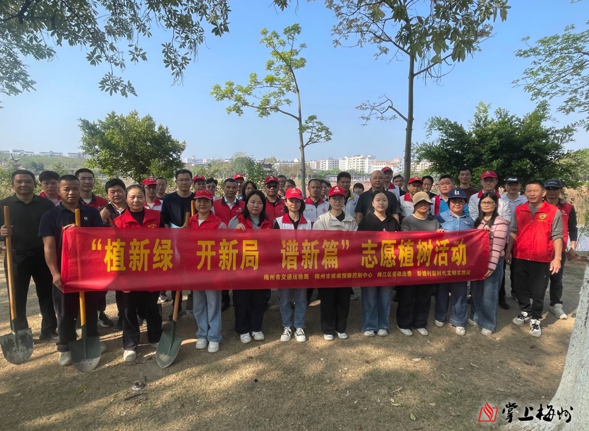 掌上梅州讯 3月18日上午,梅江区新塘村新时代文明实践站以“植新绿 开新局 谱新篇”志愿植树活动为契机,牵头联动梅州市交通运输局、梅州市疾病预防控制中心、梅江区委政法委等多家共建单位开展义务植树活动。