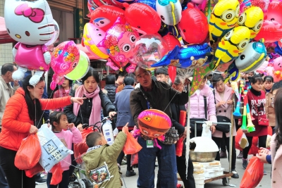 新春佳节,天气晴朗,温度适宜,市民纷纷携老扶幼出游。