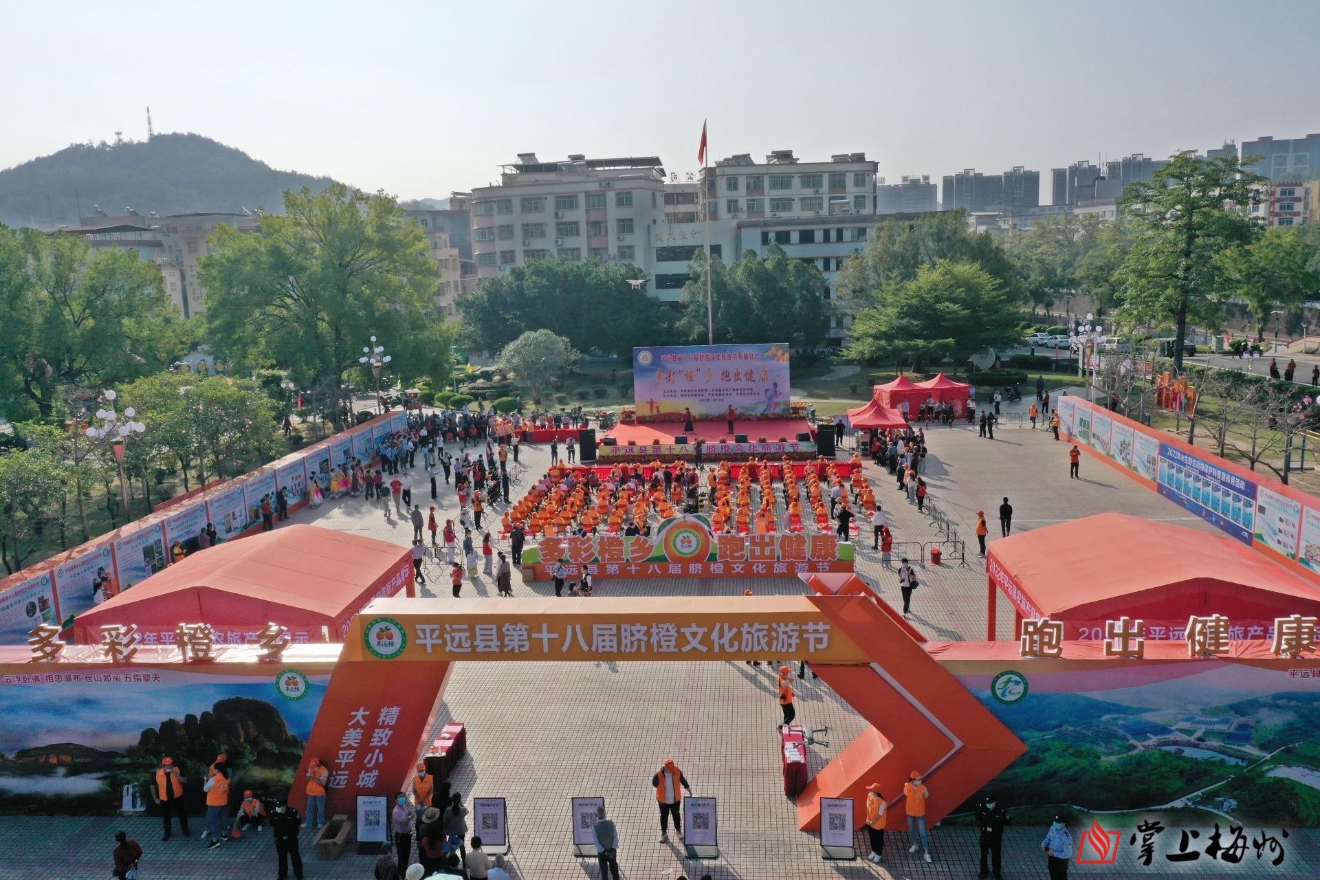2022年11月18日,以“多彩橙乡 跑出健康”为主题的平远县第十八届脐橙文化旅游节在县人民广场开幕。(钟小丰 摄)