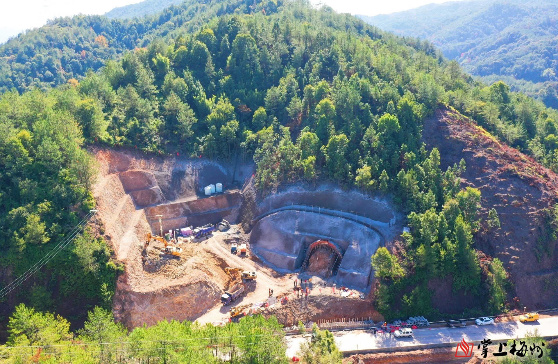 2022年9月30日,连通赣南及梅州两个苏区的瑞金至梅州铁路广东段正式动工。图为位于平远大柘镇梅二村的李屋隧道建设现场。(钟小丰 摄)