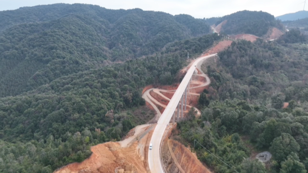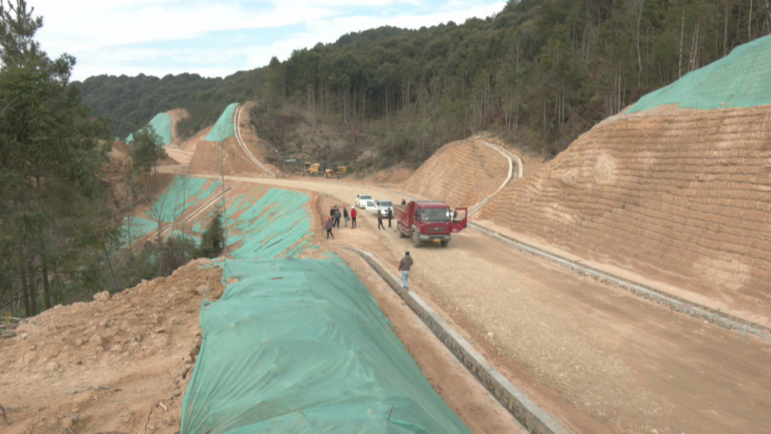 项目管理人员 叶世加:“在建的梅岭公路(二期)投资总额是2500万元,目前,路基工程完成约90%,计划2月份可以完成路面工程,3月份可以实现路面通车。”