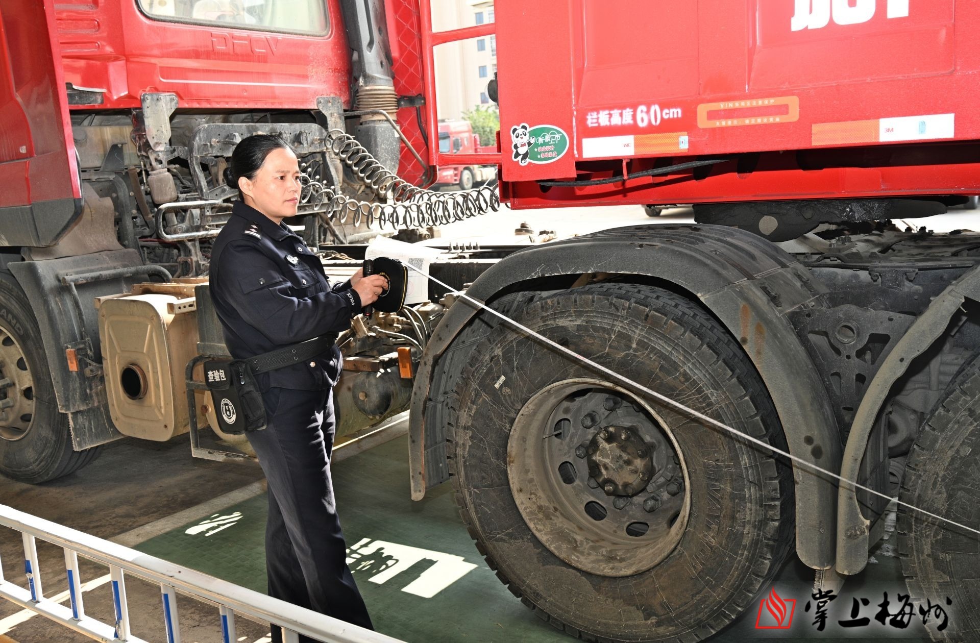 韩燕兰在查验入户车辆。(袁志鹏 摄)
