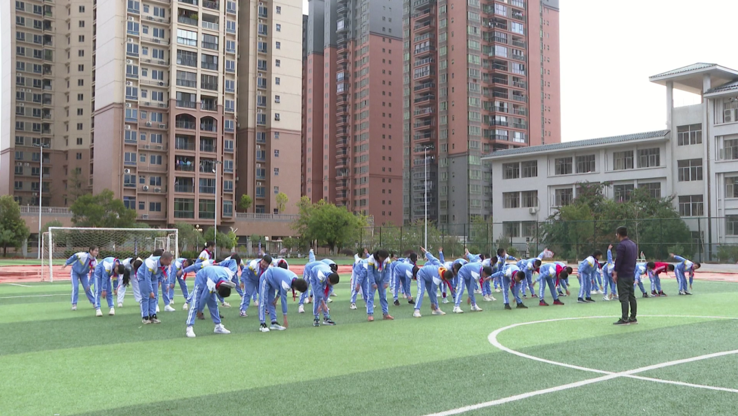 除了心理疏导,“阳康”后学生的体能锻炼也变得相当重要。在实验小学操场上,学生们正在进行热身运动。此外,学校还专门制定日常训练方案,循序渐进帮助学生增强身体素质。